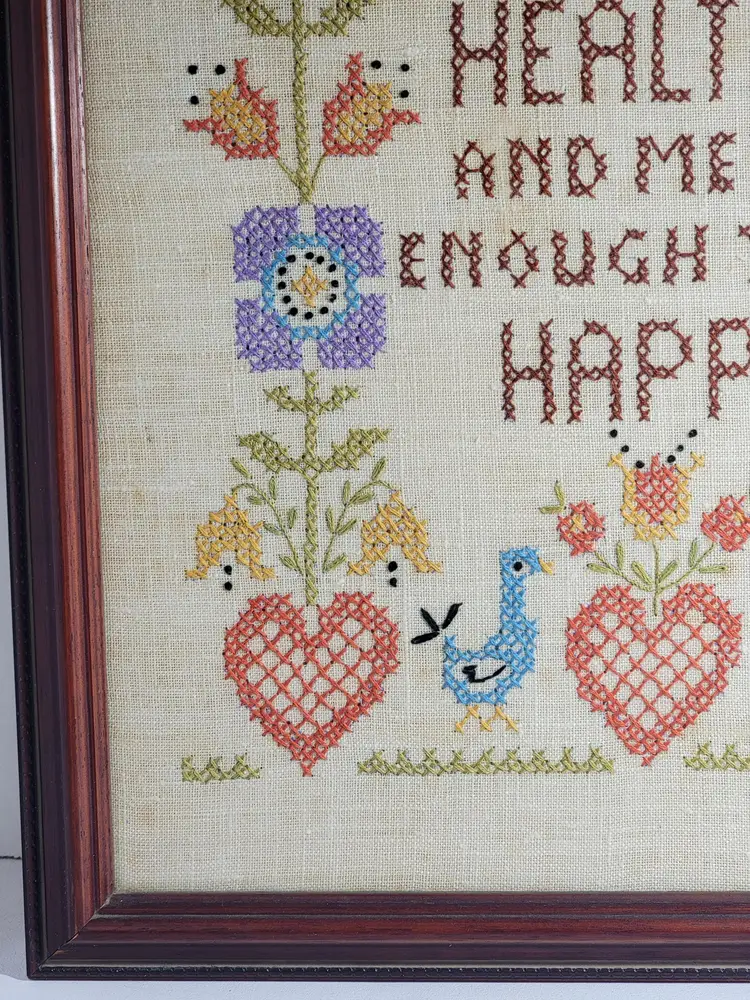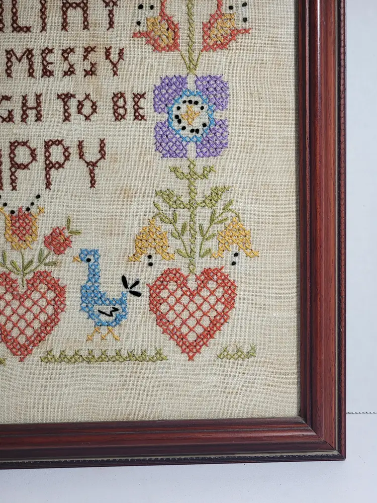 17.75"x13.5" framed crosstitch. Birds, flowers. STUNNING!
