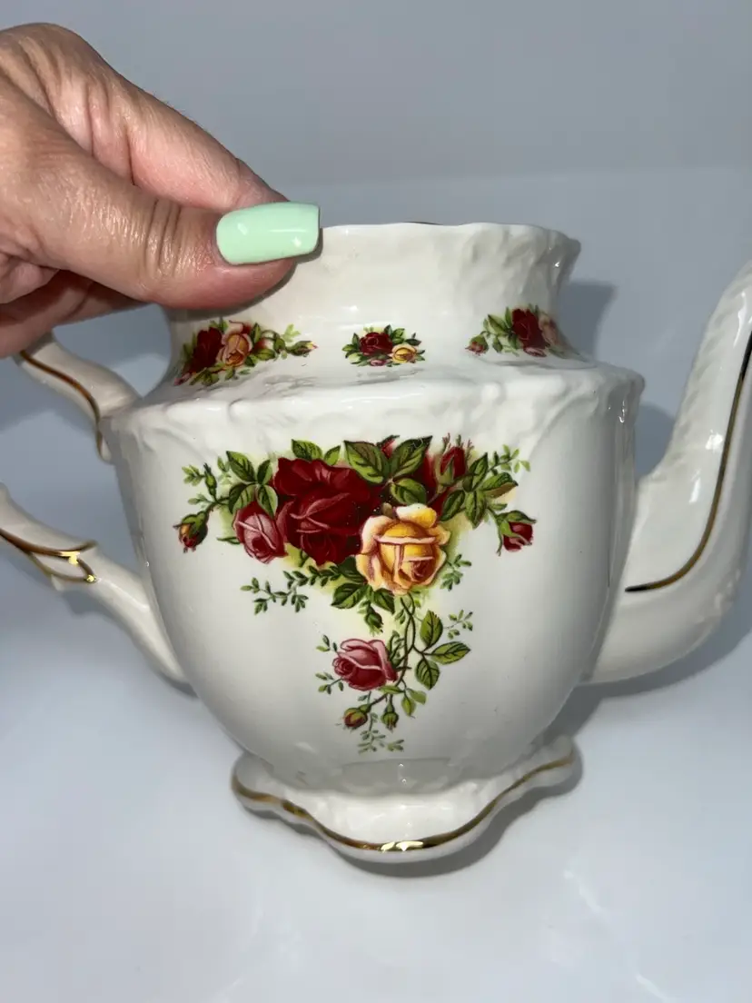 This vintage Crown Dorset teapot is a beautiful addition to any collection. With its Old Country Roses pattern and multicolor design, it is sure to catch the eye of any tea lover. Made in England from high-quality porcelain, this teapot is both durable and functional.