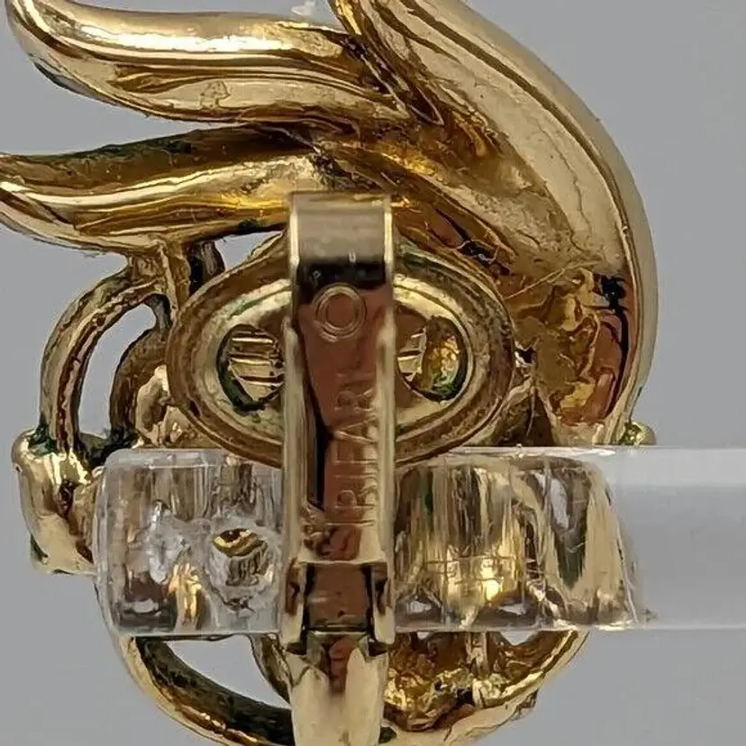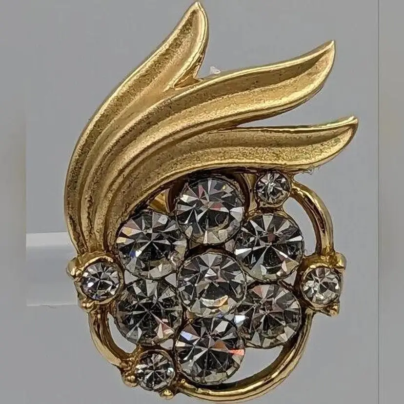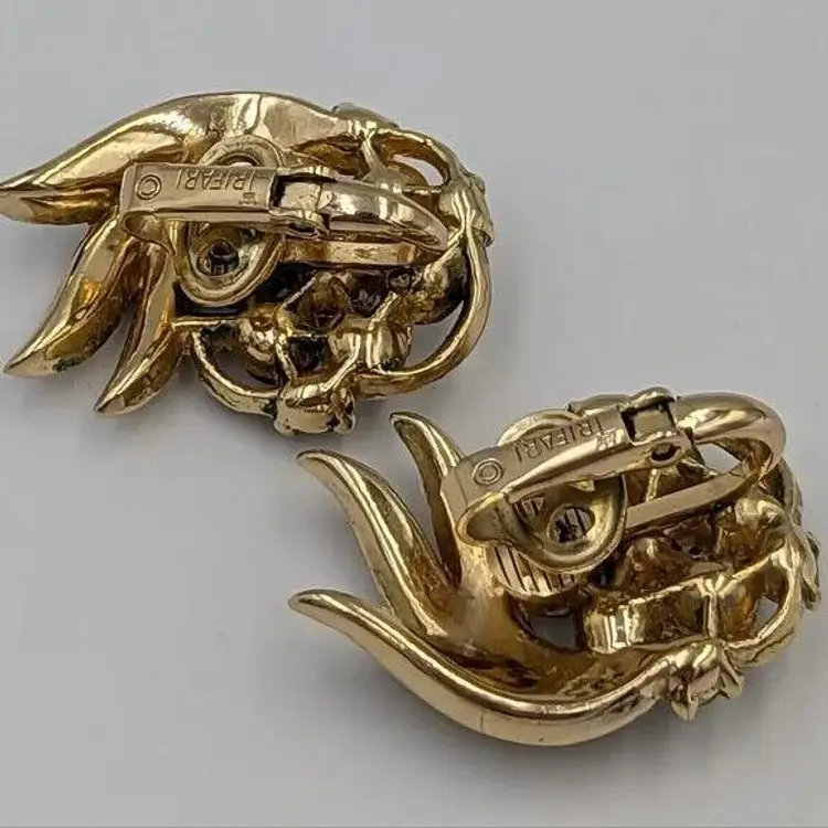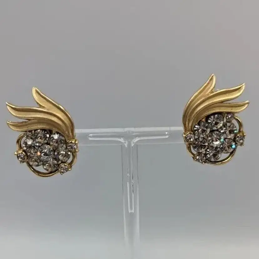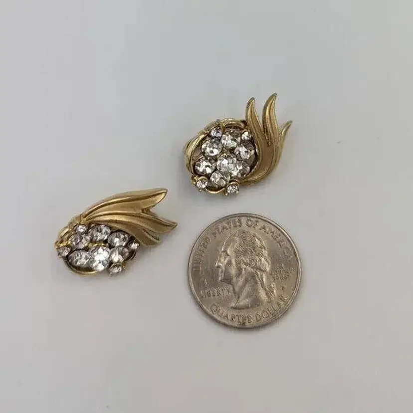 Beautiful Vintage Gold Tone Rhinestone Crown Trifari Clip on Earrings Signed Trifari with Crown 1" x 3/4" Good vintage condition