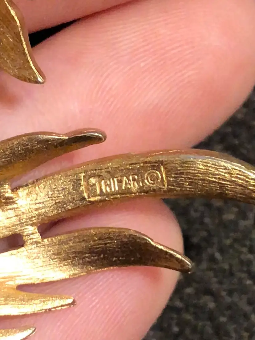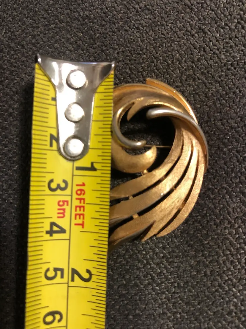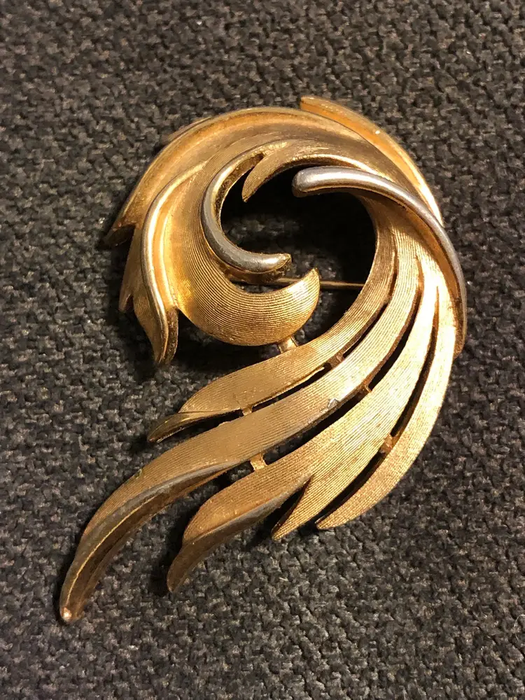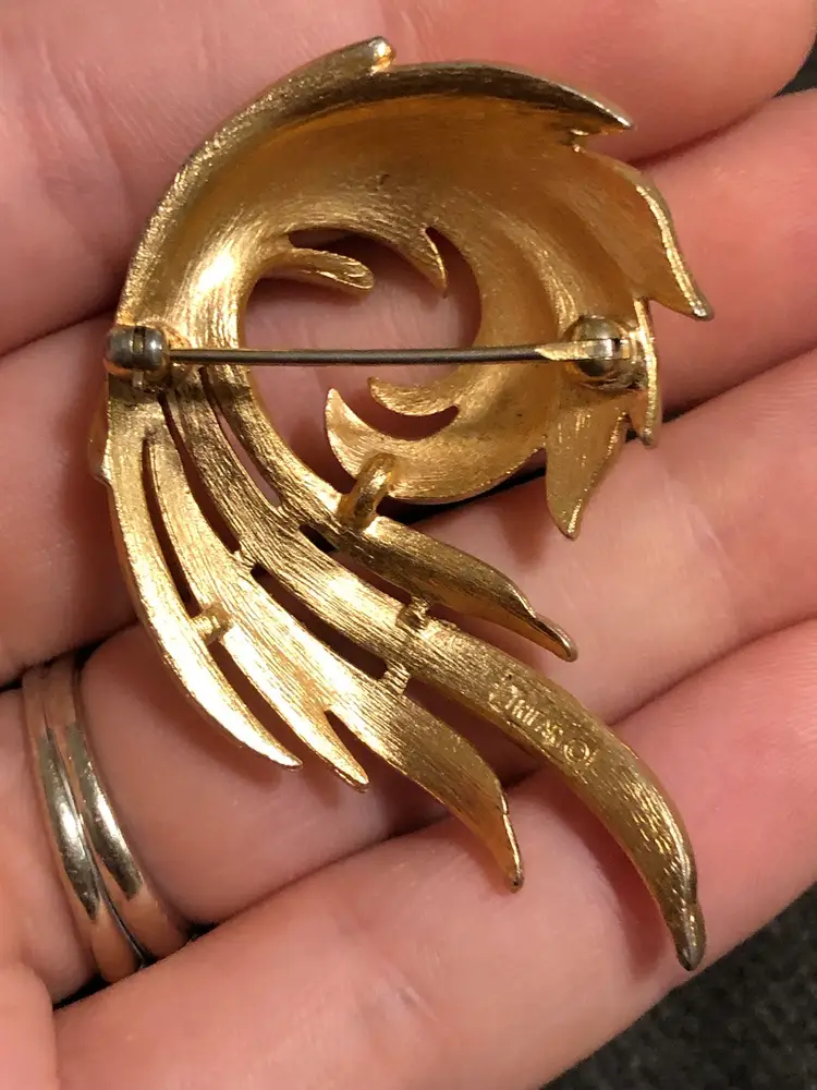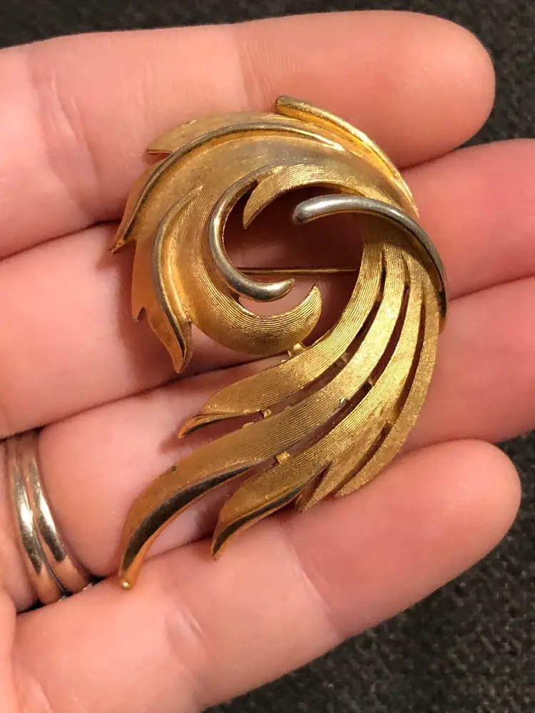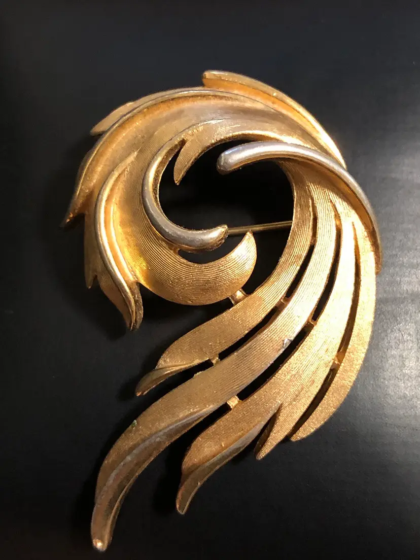 Vintage Crown Trifari Gold-Tone Swirl Feather Leaf Brooch