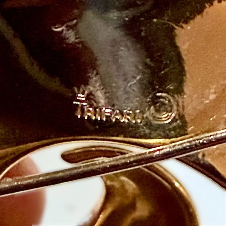 Approx 1.75” x 1.5”; signed Crown Trifari; good condition; no issues.