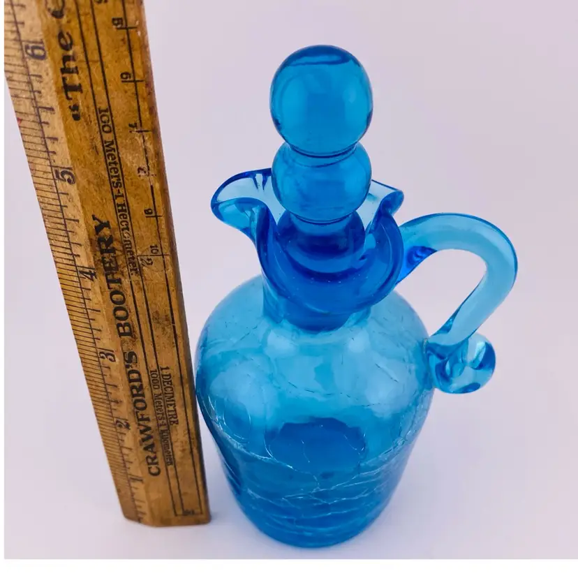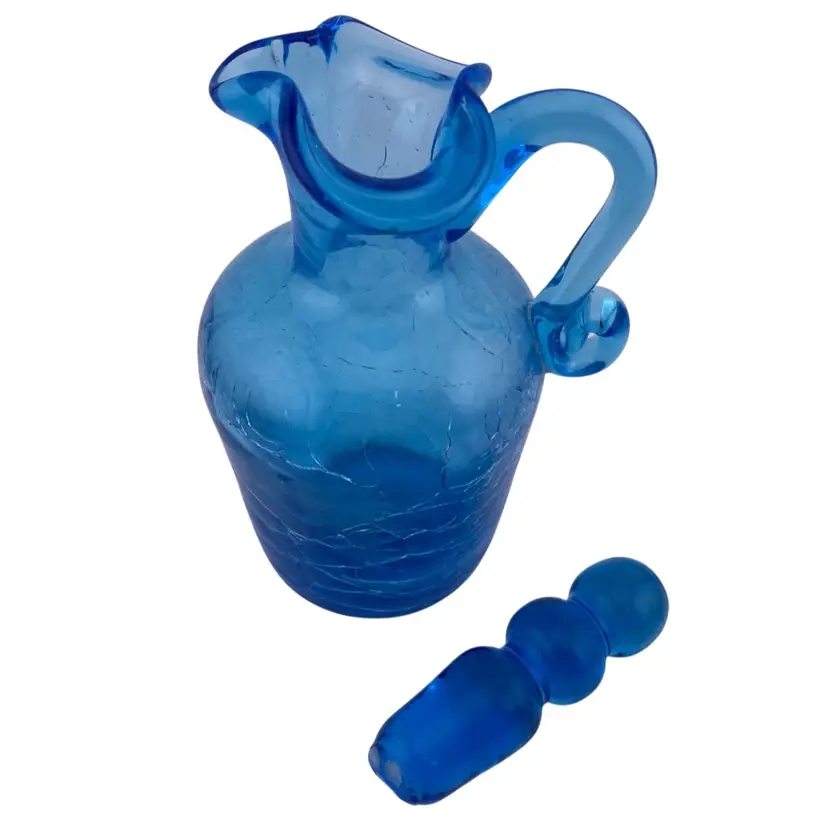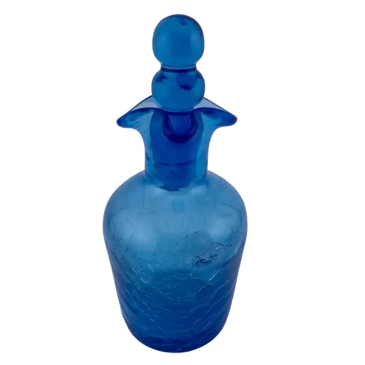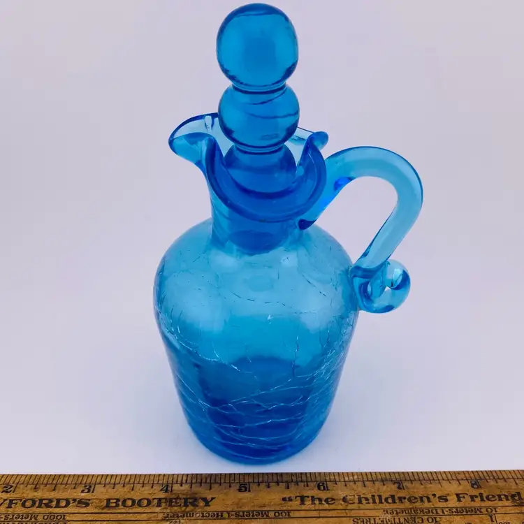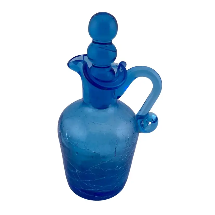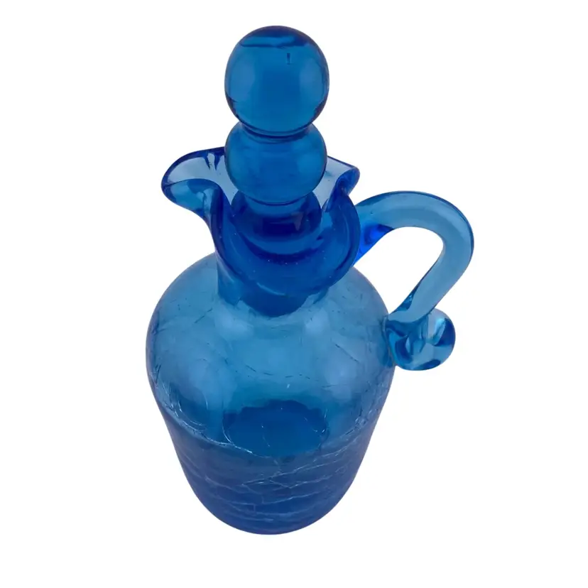 Vintage Cruet Blue Crackle Glass and Stopper Retro
