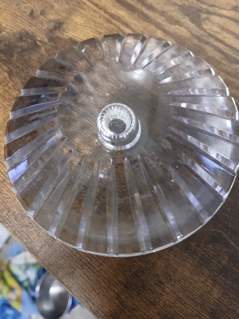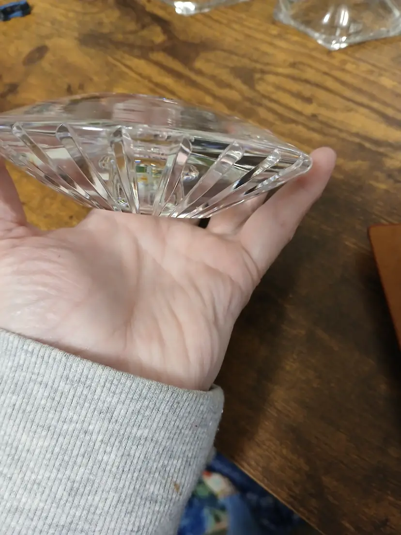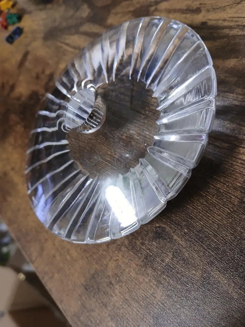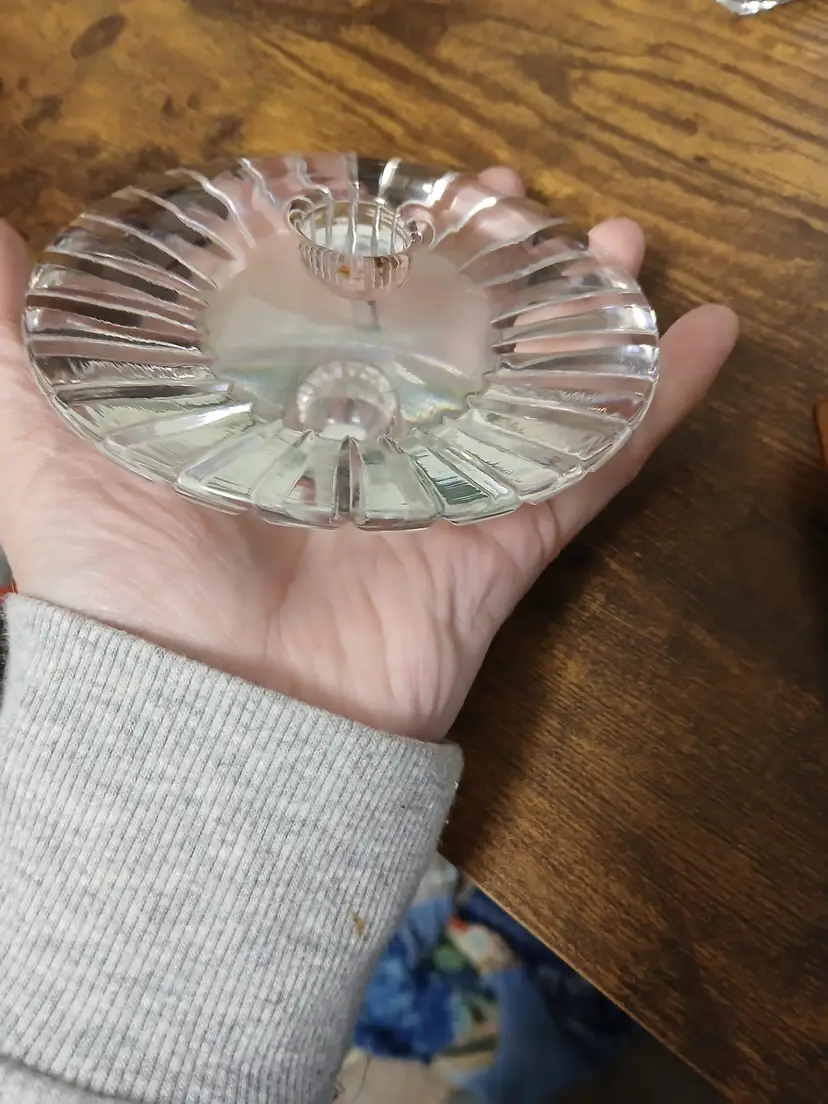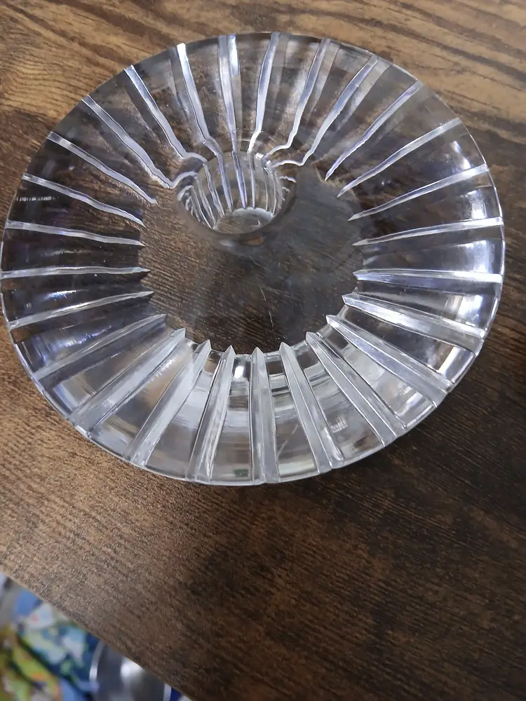 Add a touch of elegance to your home with this vintage crystal candle holder. Perfect decorative piece. Its timeless design makes it a charming addition to any tabletop. Approximately 5" diameter