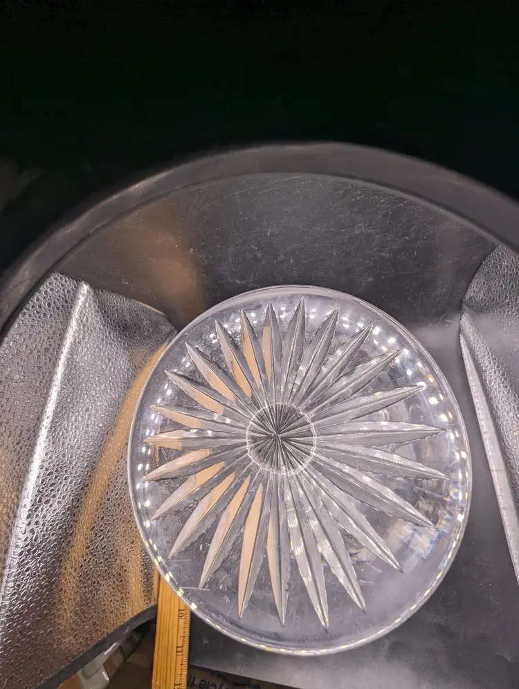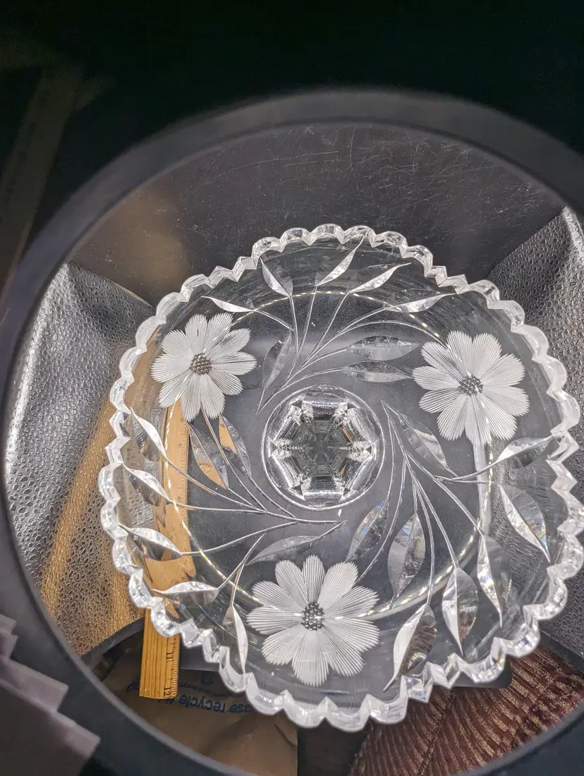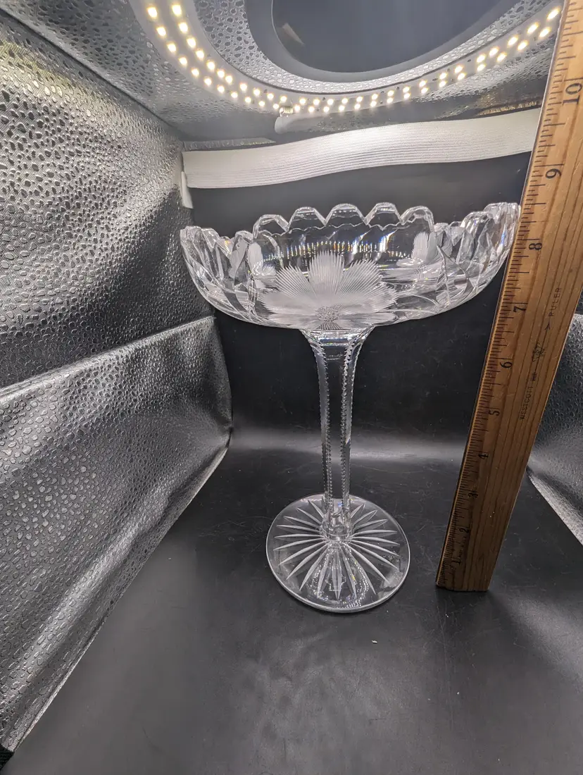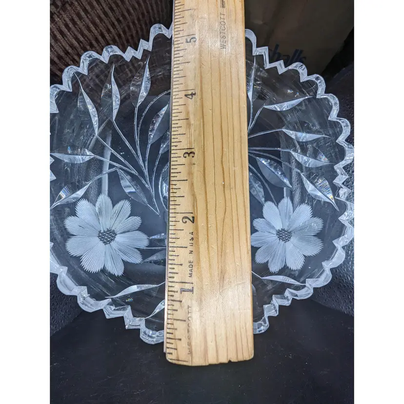 Elegant vintage crystal compote dish with intricate etched floral design. Perfect for adding a touch of sophistication to your decor. Please see all pictures for condition and measurements.