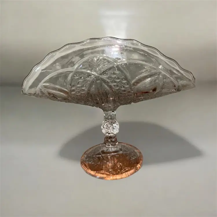 Introducing our Vintage Crystal Folded Pedestaled Candy Dish, a stunning addition to your home decor. Crafted with precision, this dish boasts a generous size of 10” x 5.5” x 7.5”, perfect for displaying your favorite sweets. Made of high-quality crystal, its intricate folds and pedestal design add a touch of elegance to any space. Elevate your entertaining game and impress your guests with this timeless piece.