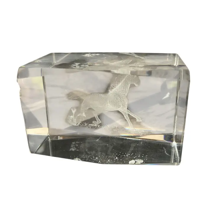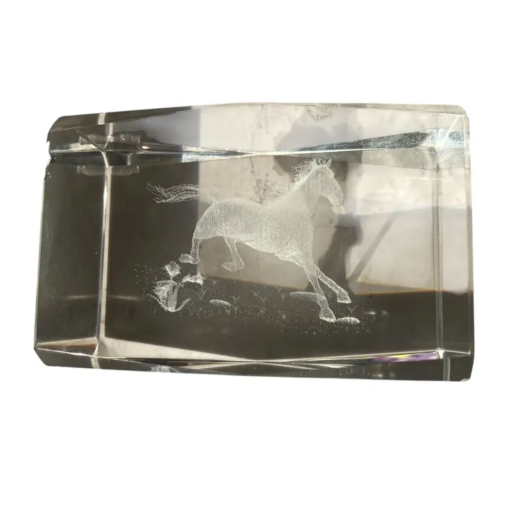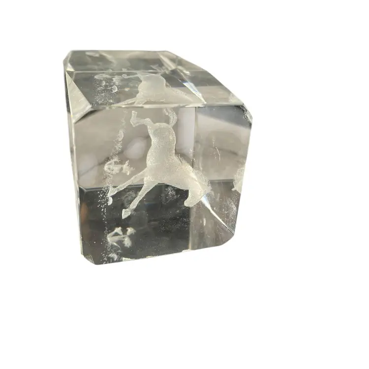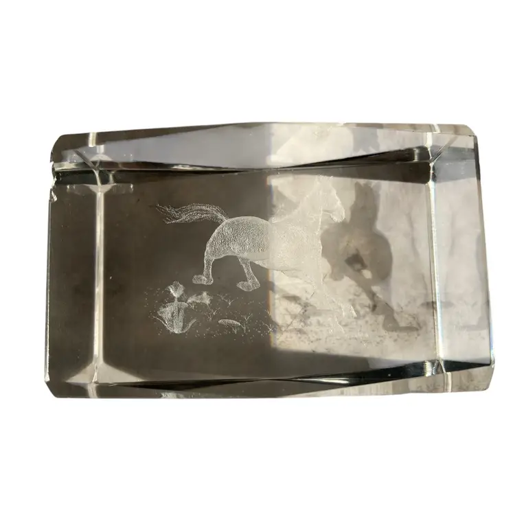 Vintage Crystal Glass 3D Laser Etched Rearing Horse Paperweight chip on side corner