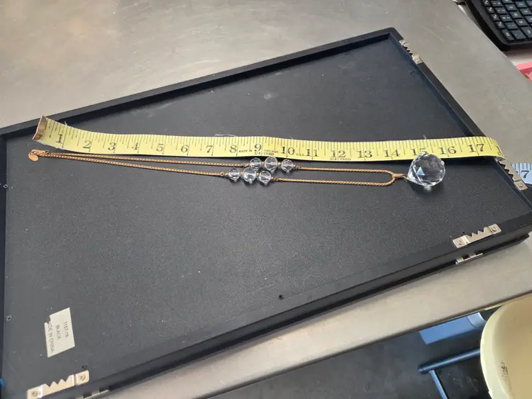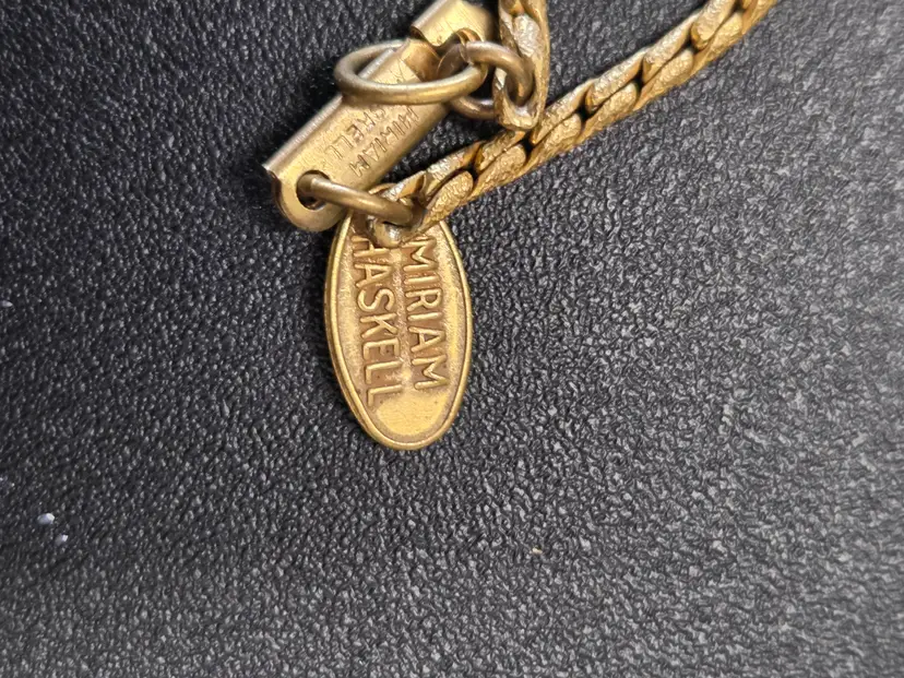 Vintage Miriam Haskell Crystal Necklace 1.2" faceted crystal pendant 28" chain[with patent number] chain has 6 faceted crystals.