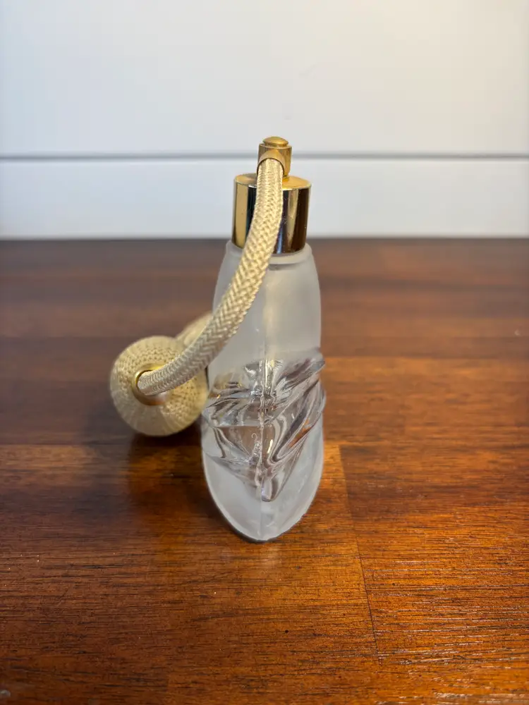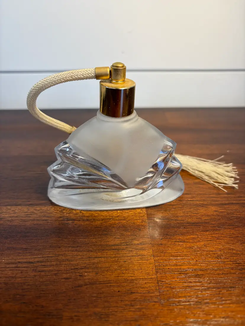 Elegant crystal perfume atomizer with a classic tassel pump. Perfect for adding a touch of vintage charm to your vanity. 4 inches tall and 4 inches wide functional bulb, no chips or cracks