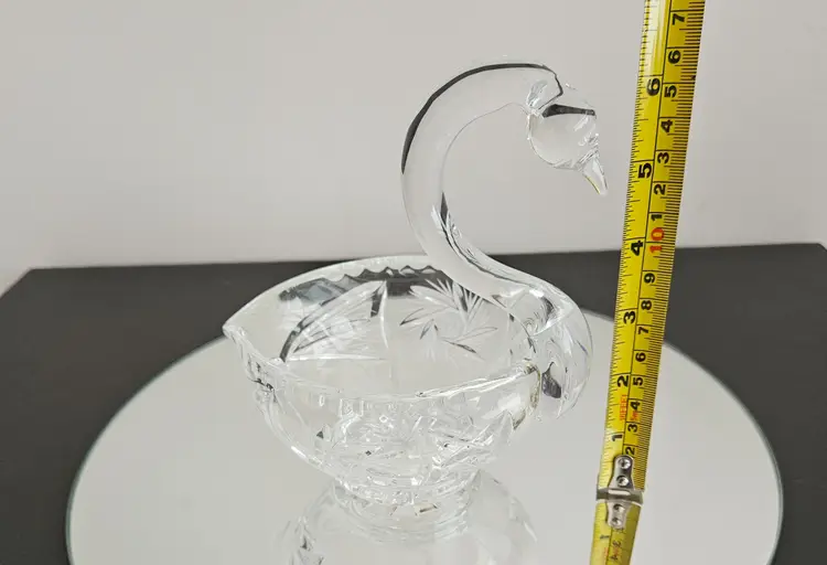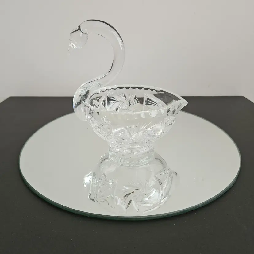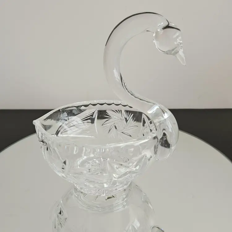An elegant crystal swan that emits beautiful diamond hues when light goes through it.