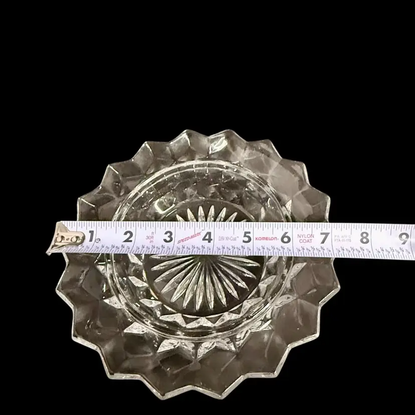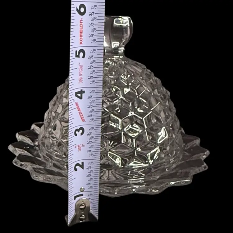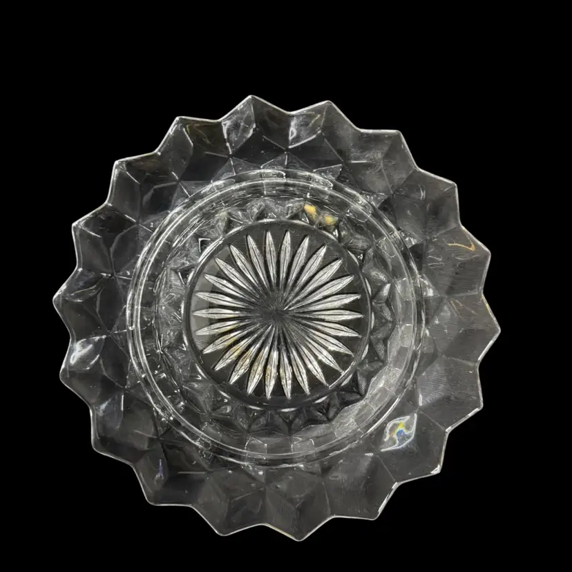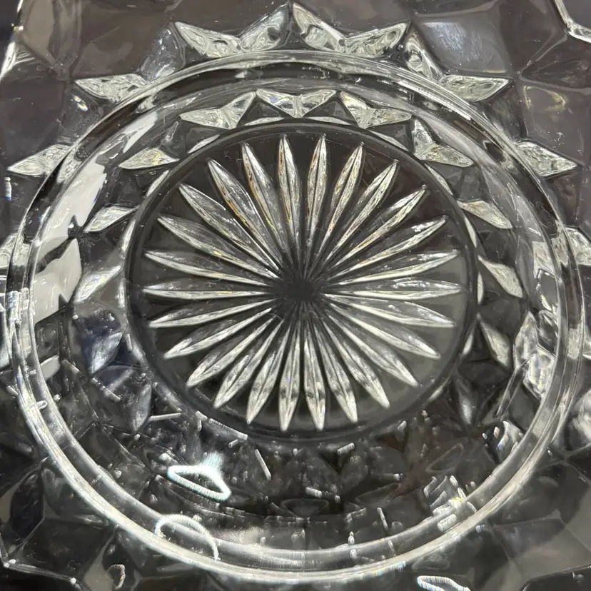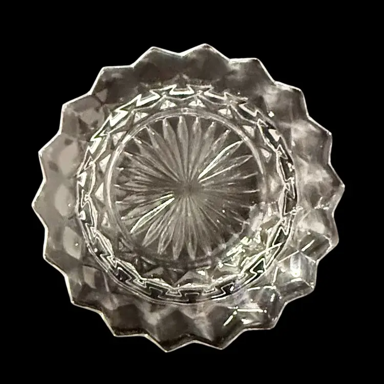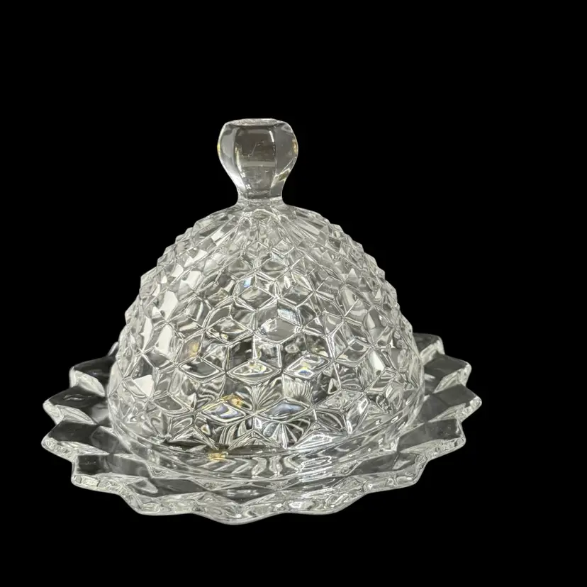 Vintage Cubist American Fostoria American Glass Dome Butter Dish. Light UV Glow with 365 black light.