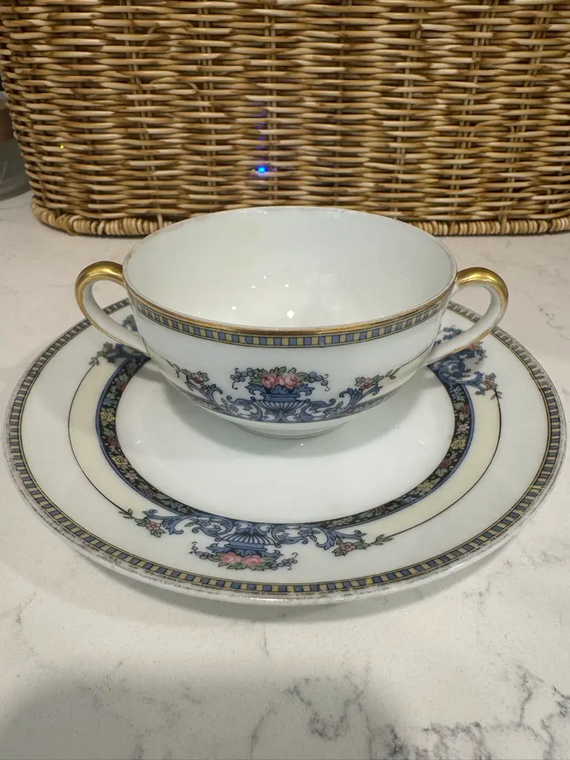 Noritake “Daventry” cup and saucer. Love the double handle! Would look so cute with some flowers