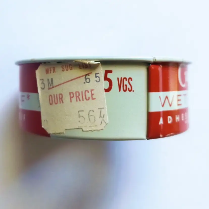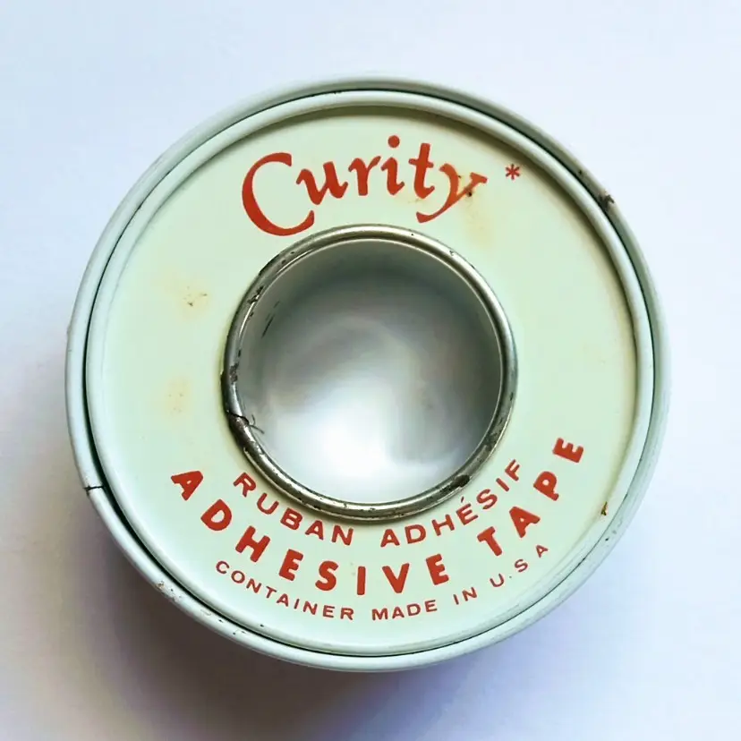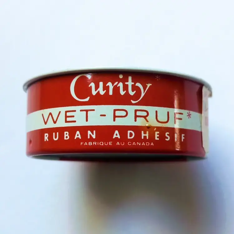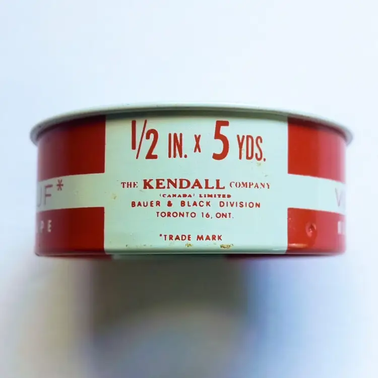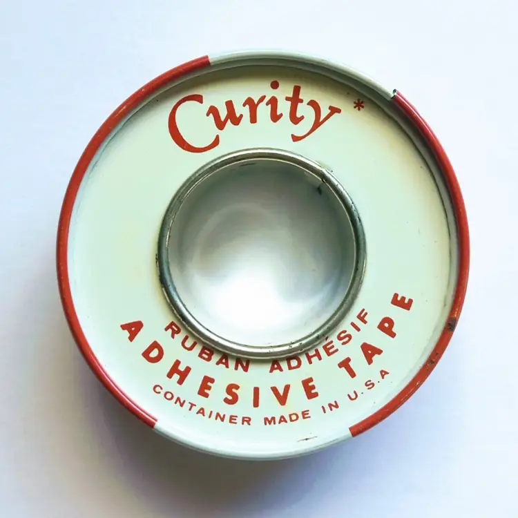 Discover a charming piece of history with the Vintage Curity Wet-Pruf Adhesive Tape Tin. This empty tape tin measures 2 1/4 x 7/8 inches and boasts a delightful red and white design with original store price tag that evokes the nostalgia of bygone eras. Crafted in the United States, it's a testament to the classic American advertising aesthetic. Ideal for collectors and enthusiasts of vintage memorabilia, this tin adds a unique touch to any collection. The Curity brand has been a trusted name in adhesive products, and this collectible item captures the essence of their legacy. Display it proudly or gift it to a fellow collector; either way, it's sure to be a conversation starter.