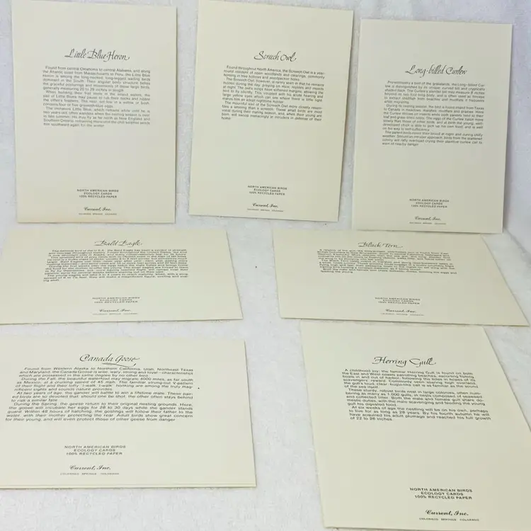Blank inside so they can be used for different occasions. Each has description of featured birds. Please review photos for individual messages.