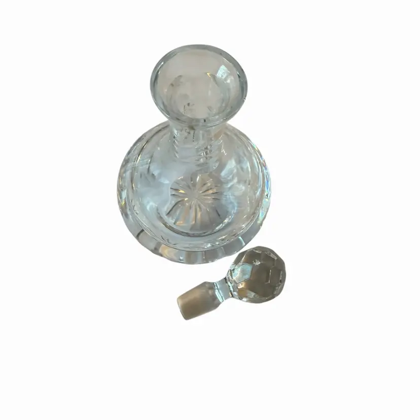 vintage cut crystal decanter, likely originating from East Germany or Bavaria, 6”