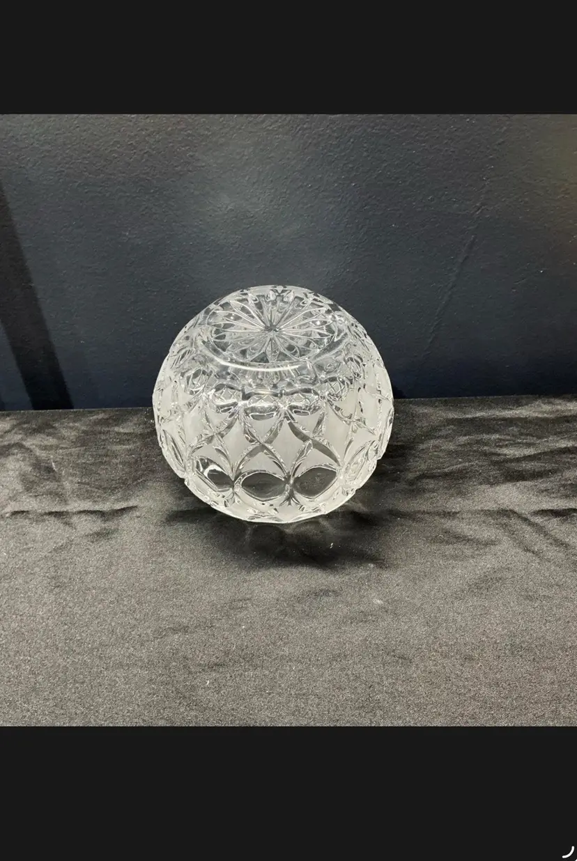 This vintage cut crystal globe vase features a diamond and circle pattern, standing at 5.5 inches tall. Made with a clear crystal material and using an etched glassmaking technique, this round vase is perfect for all occasions and can be cleaned with warm water for easy maintenance. The intricate design and classic shape make it a beautiful decorative piece for adults' departments or collectors' homes, adding a touch of elegance to any space.