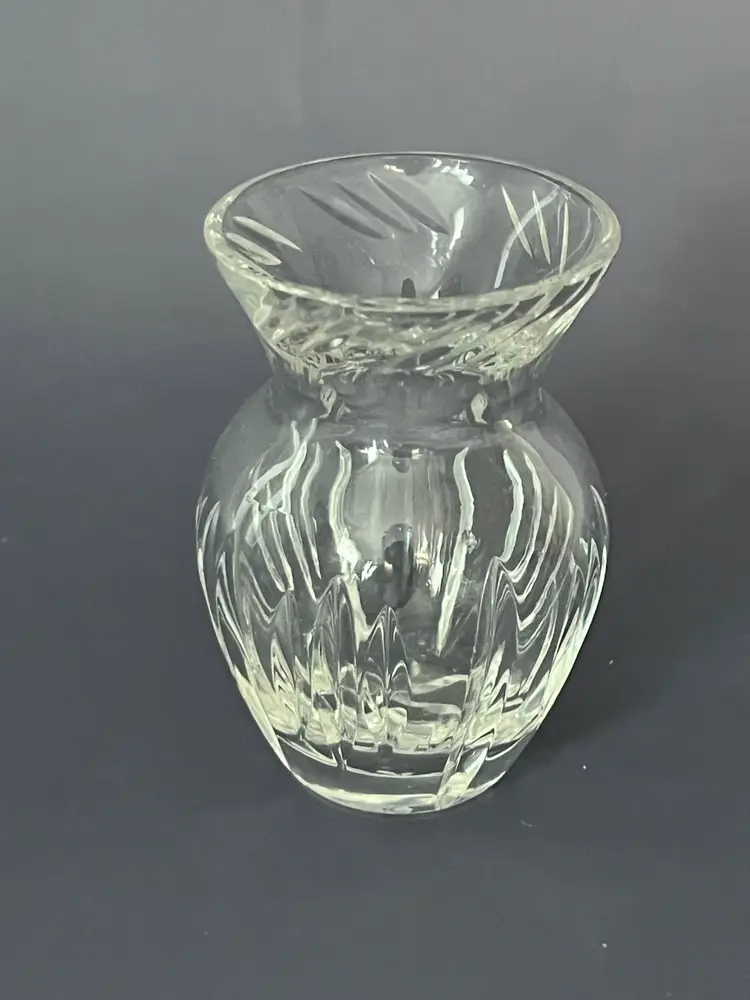 This wonderful crystal toothpick or matchstick holder is a gem. The cuts are unique and I believe hand done as they are not uniform in size or number. It has the clear sparkle of lead crystal. It is weighty for its 3 inch height.