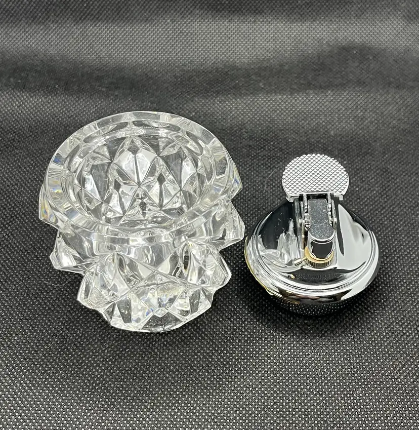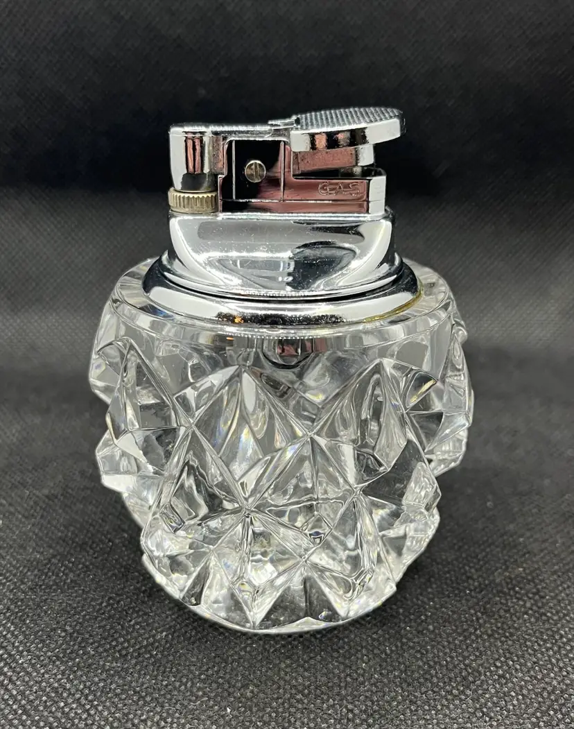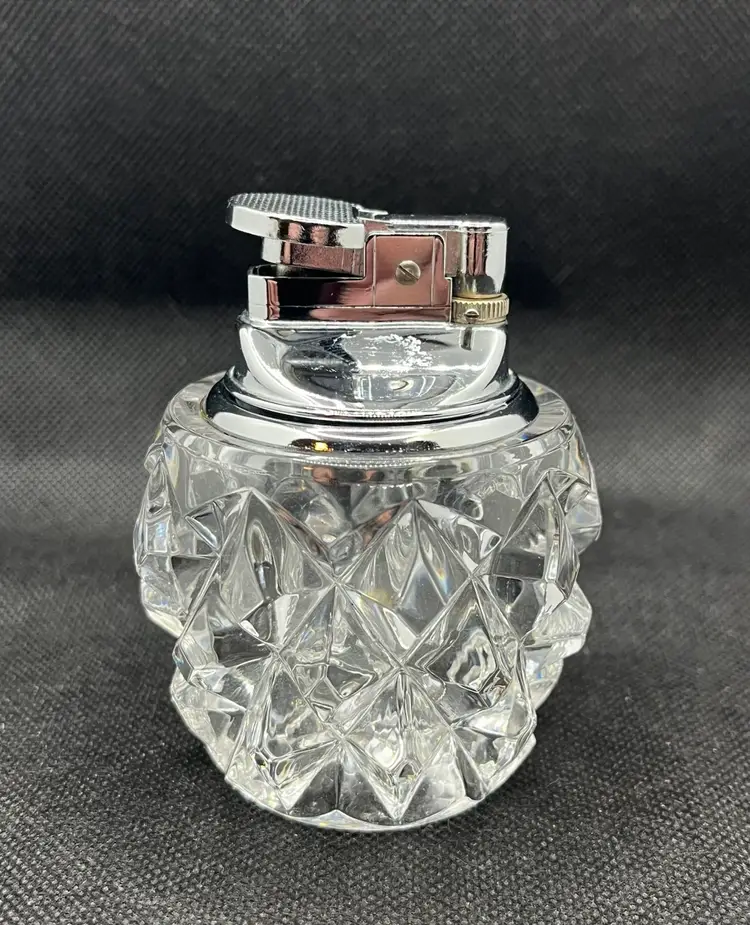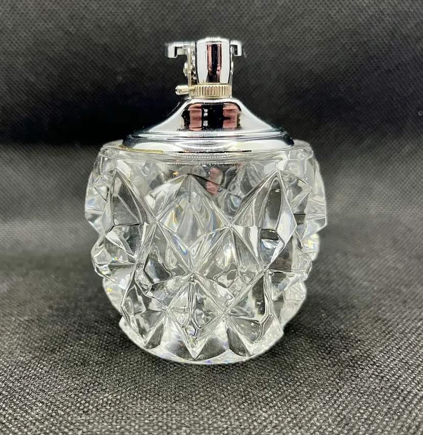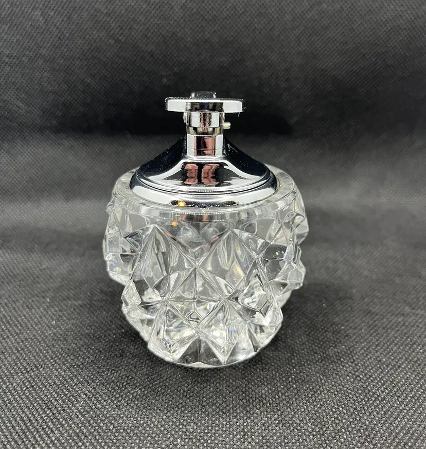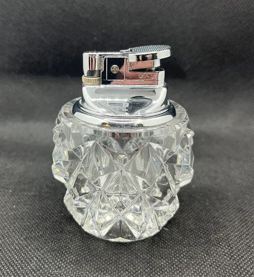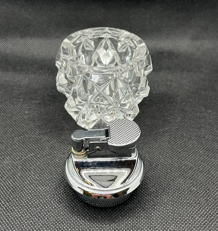 Design: It features a chrome-plated metal top with a manual ignition mechanism.