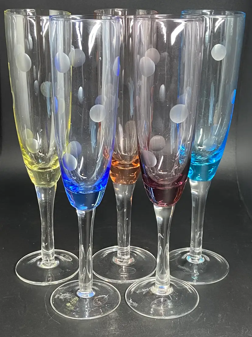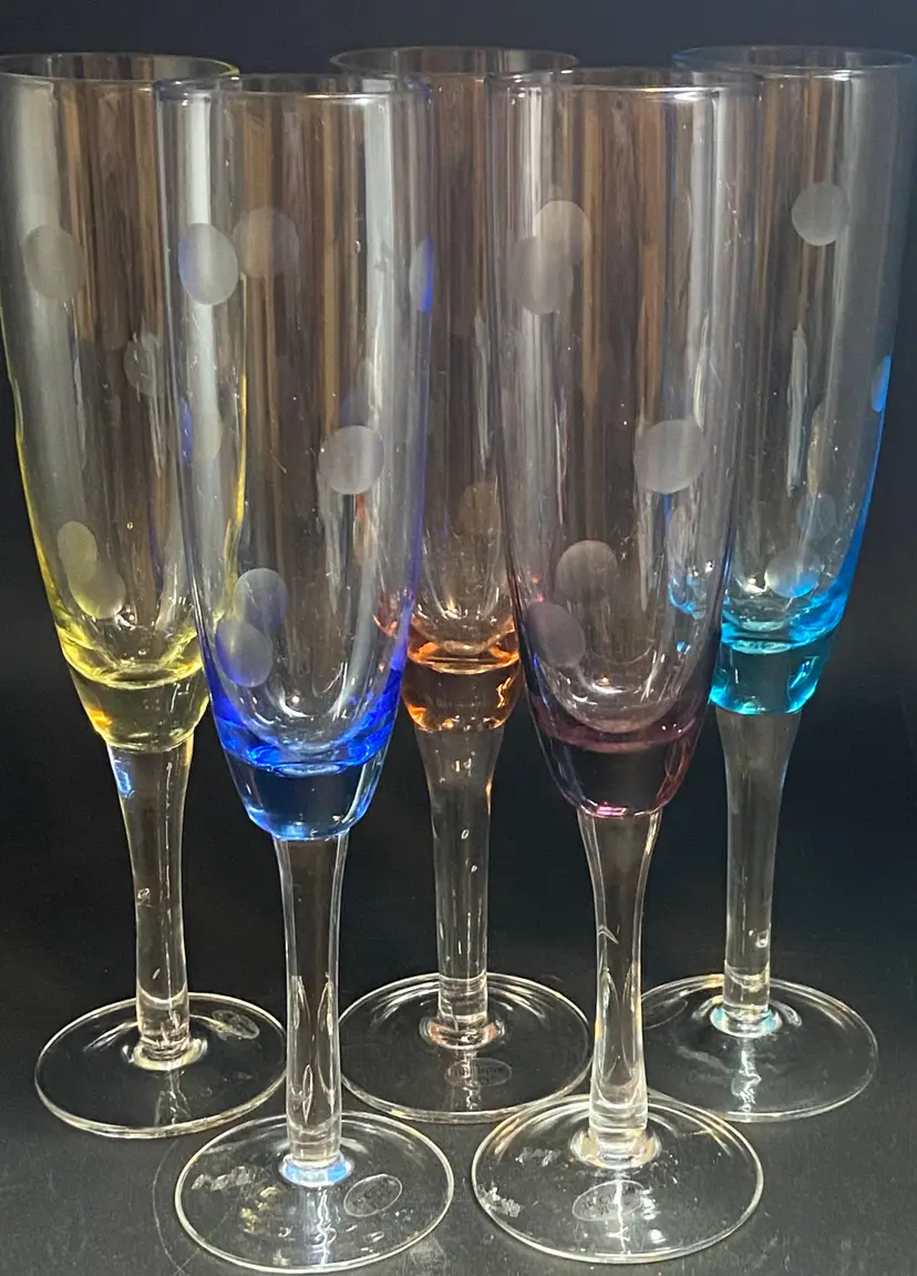 Vintage Cut Polka Dot Champagne Flute Glasses, Qty: 5, 9.25" Tall