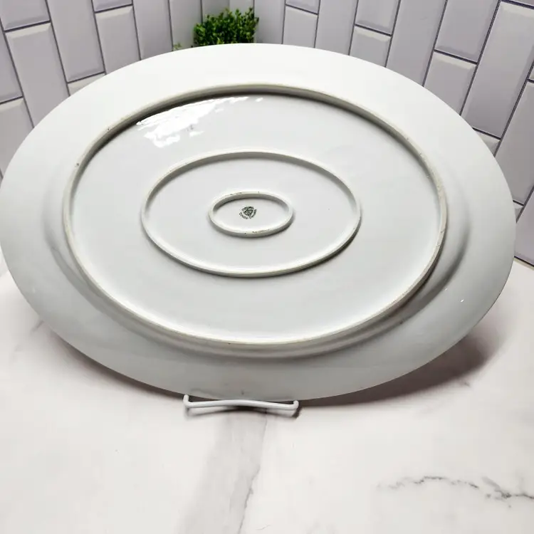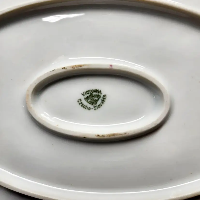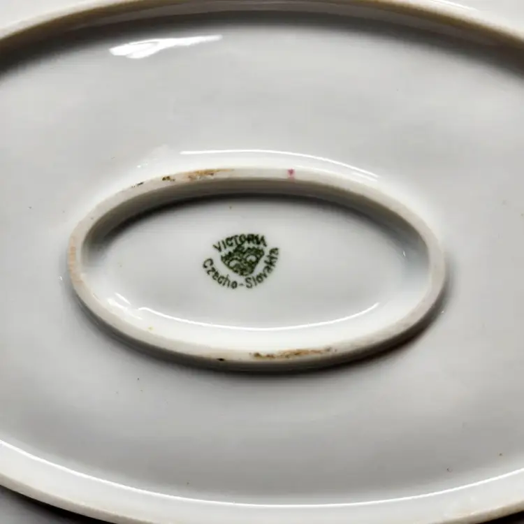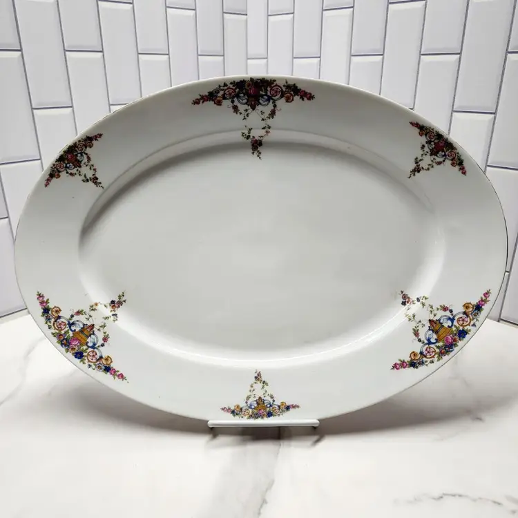 Statement Piece Vintage Czech 15" Oval Serving Platter. Decorated with Blue & Red Floral motif, Basket & Scrolls with Goldtrim. Pattern: VIT20 discontinued By: Victoria (CZECH)