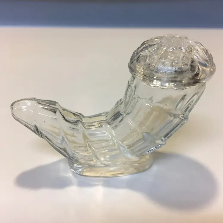 Pretty little vintage clear glass cornucopia-shaped figural shaker for salt, pepper, or what have you. The body is the "horn" and the cap is the "plenty" (fruits, etc.) Whether you need it as a replacement piece or use it as decor, you will love adding it to your collection!