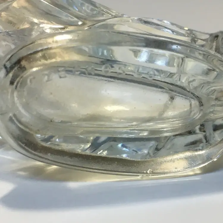 Size: 2 3/4" long x 2" tall Marks: CZECHOSLOVAKIA Condition: excellent vintage condition with a few very tiny rough spots along the base edge (only noticeable upon close examination)