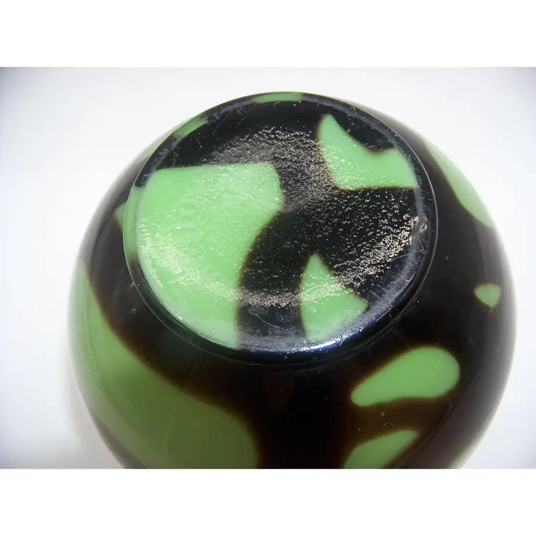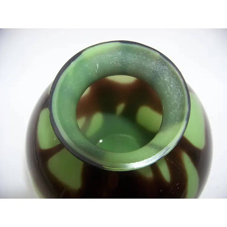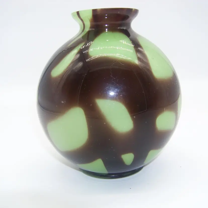 Vintage Czech glass orb vase in brown and green. Stamped Czechosovakia on bottom . It is 6.25" tall and 5" diameter. No chips or cracks.