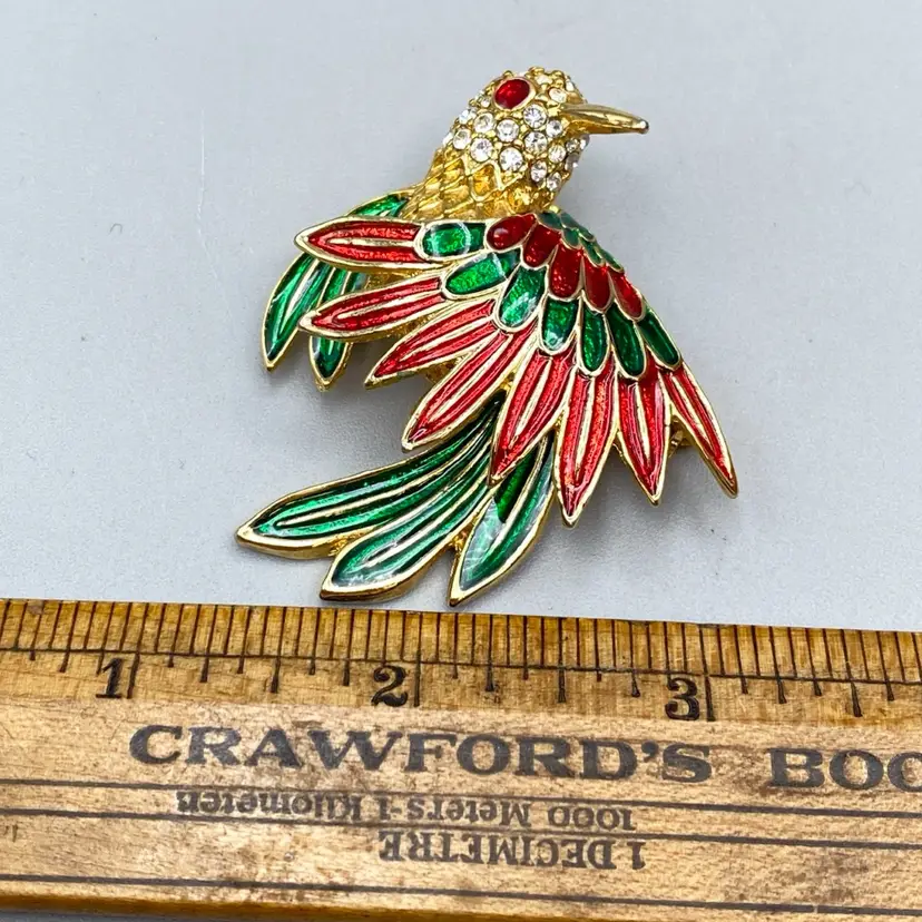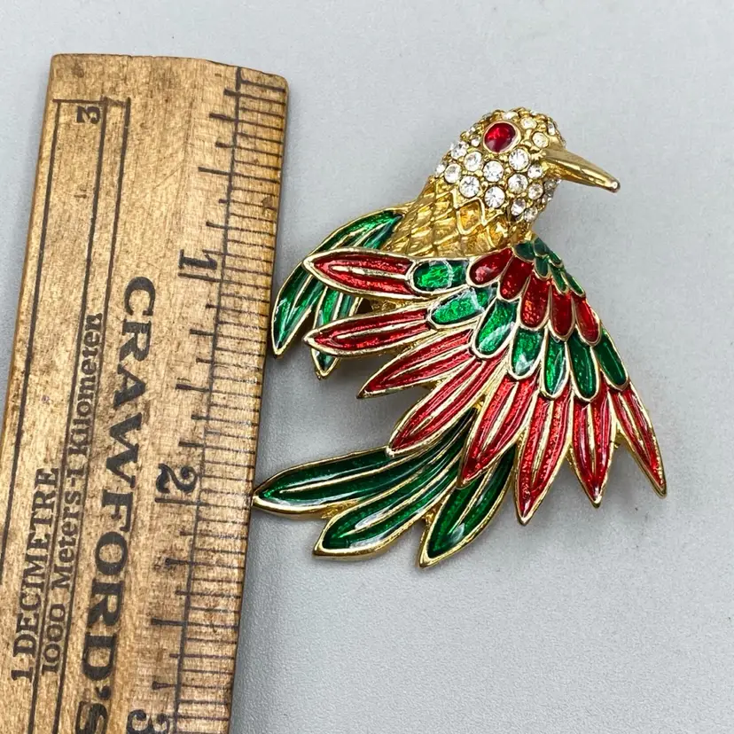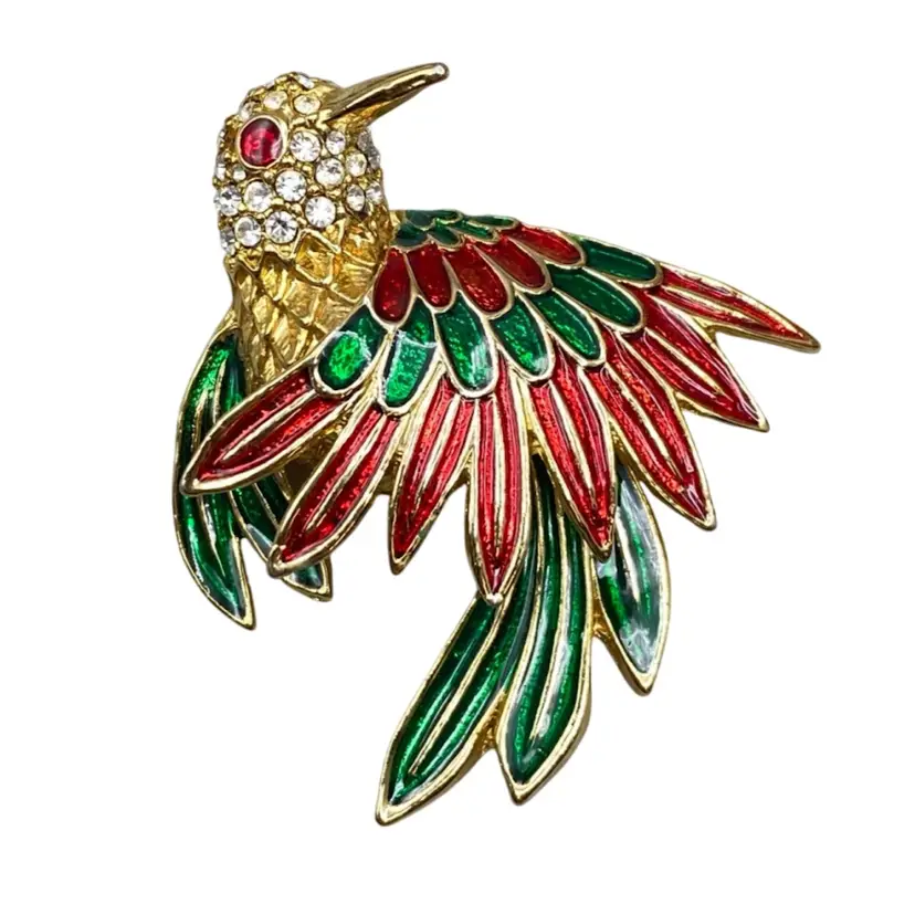 Vintage D Orlan Humming Bird Brooch Gold Tone Enamel Rhinestones Colorful