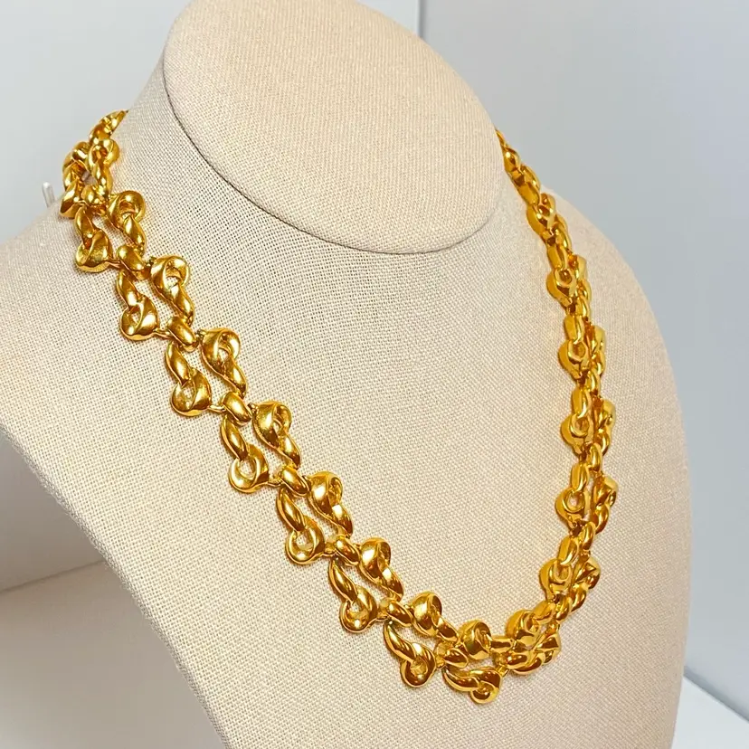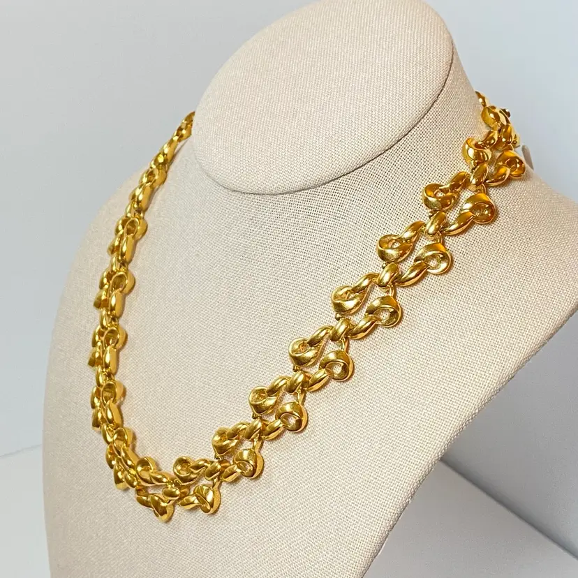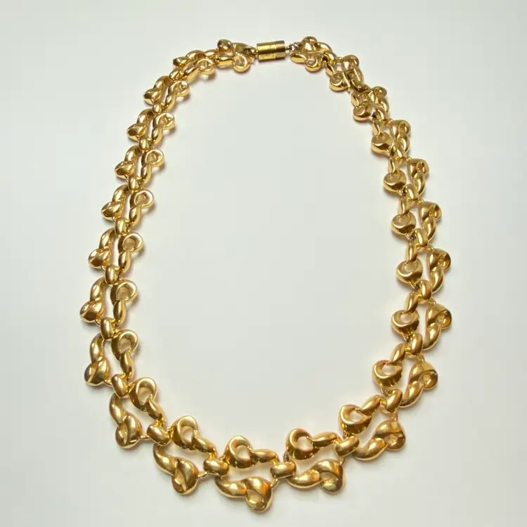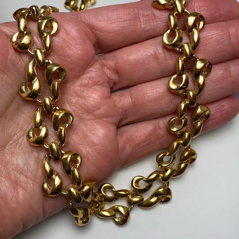 Vintage D'Orlan Signed Shiny Gold Tone Chunky Interwoven Chain Link 18" Necklace. Very good vintage condition with some wear to magnetic closure. Please see pictures for details. SMOKE FREE/PET FREE HOME Approximate measurements: Total Length- 18"