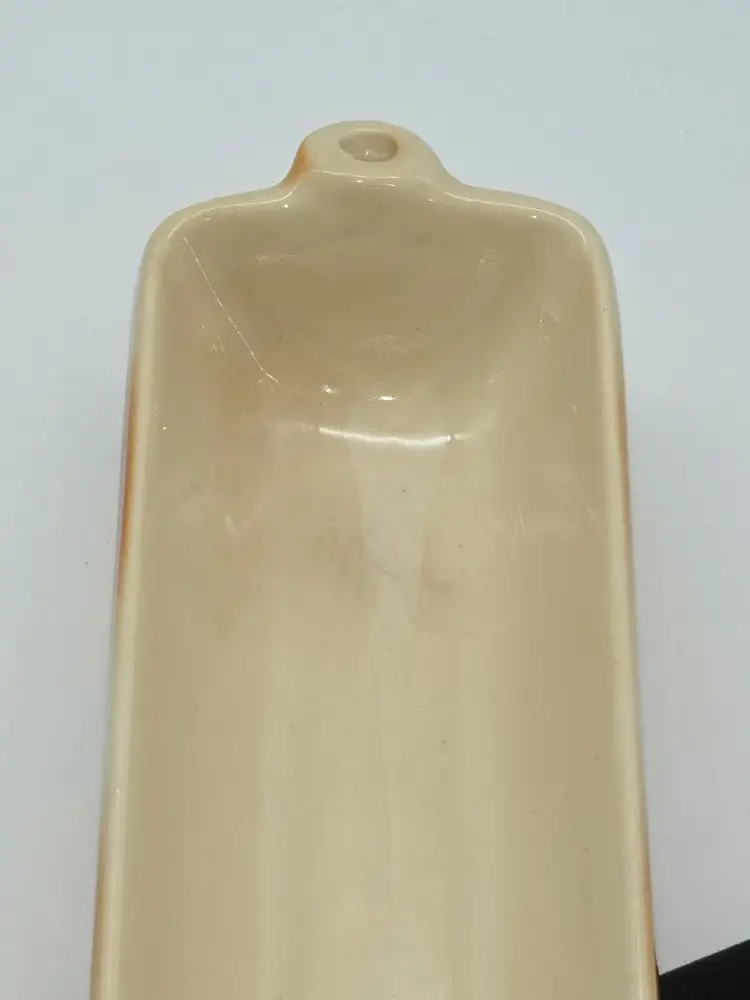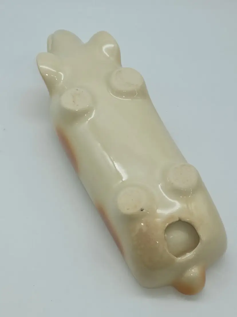 This very good boy is in very good condition. There is a light discolored spot with a little crazing on the inside of the tray and one on his bum on the under side. There is no crazing on the rest of the piece. Please see pics for detail of condition.