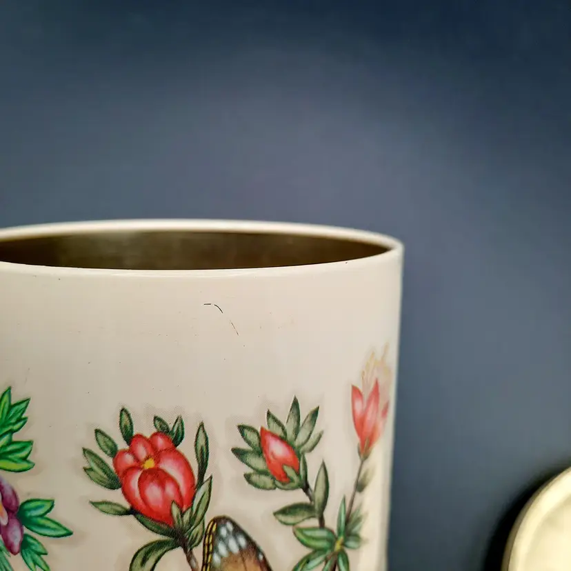 Beautiful vibrant colors on this 4 1/2" x 3 1/2" tin, does have some wear from age, scuffs and a few spots that look like extra paint from mfg process.