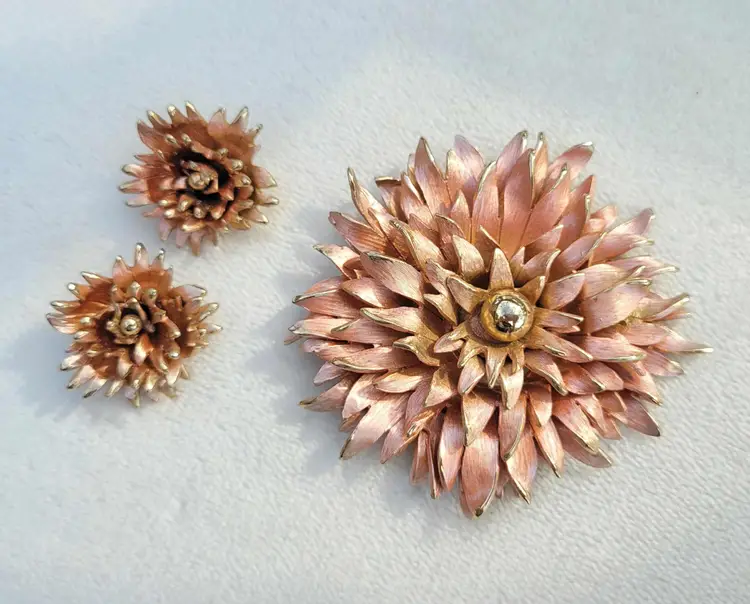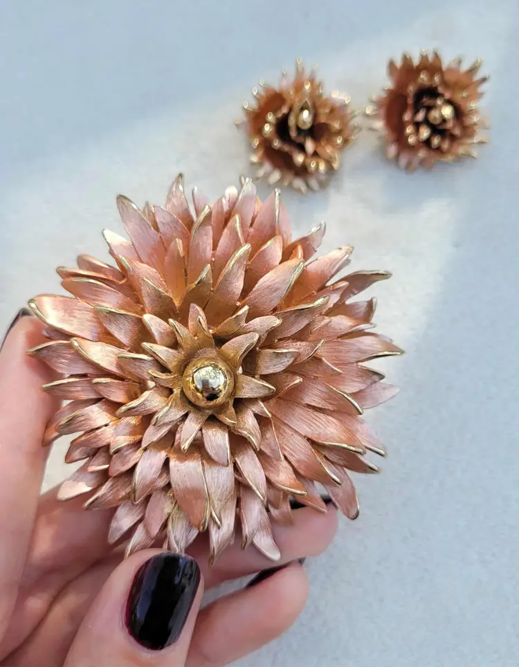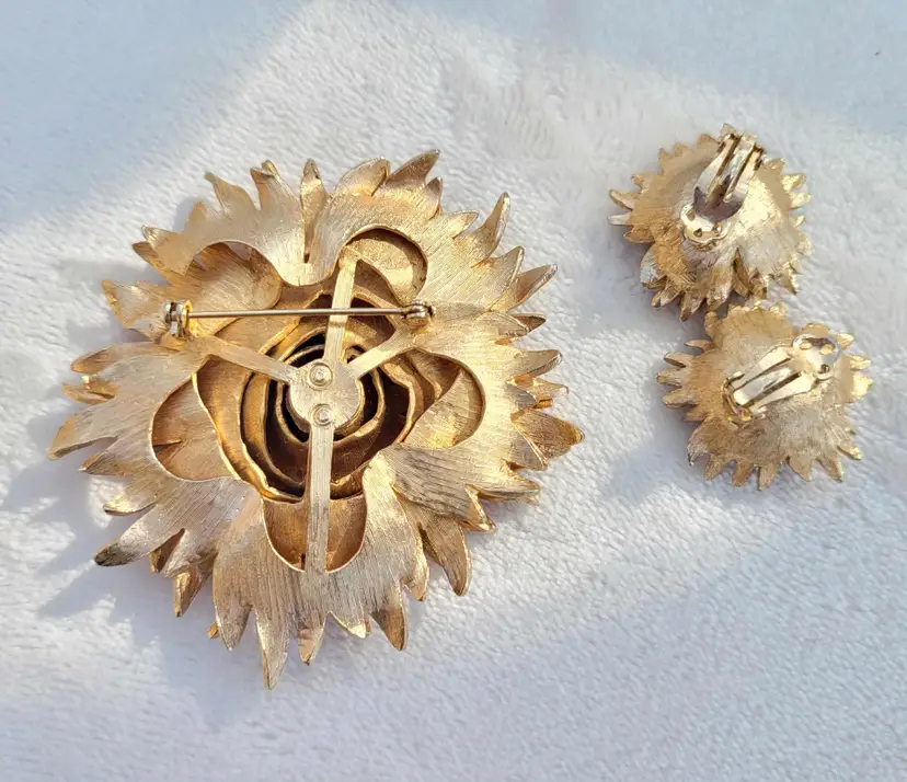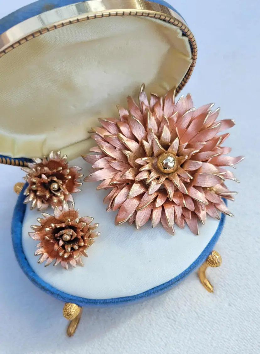 Fabulous statement brooch & clip on earring set, circa 1960s from an estate. In good overall condition, please see pictures for details and measurements.