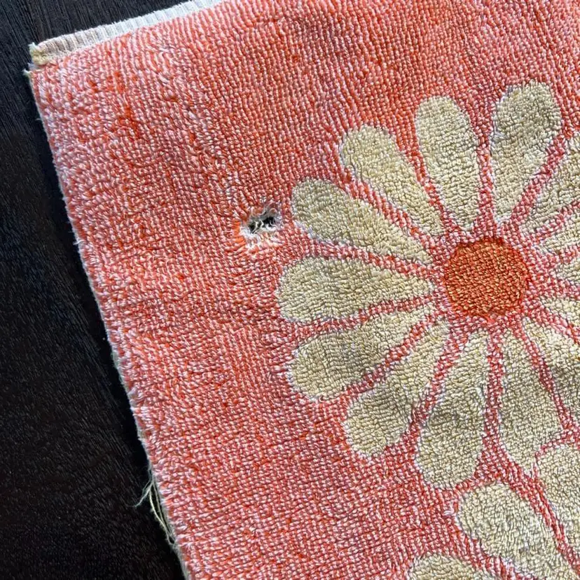 Measures 22 x33 inches. There is some wear to the sides and a small hole as shown in photo.