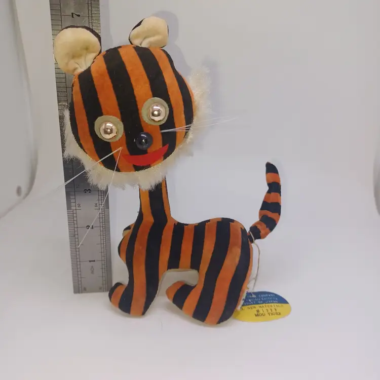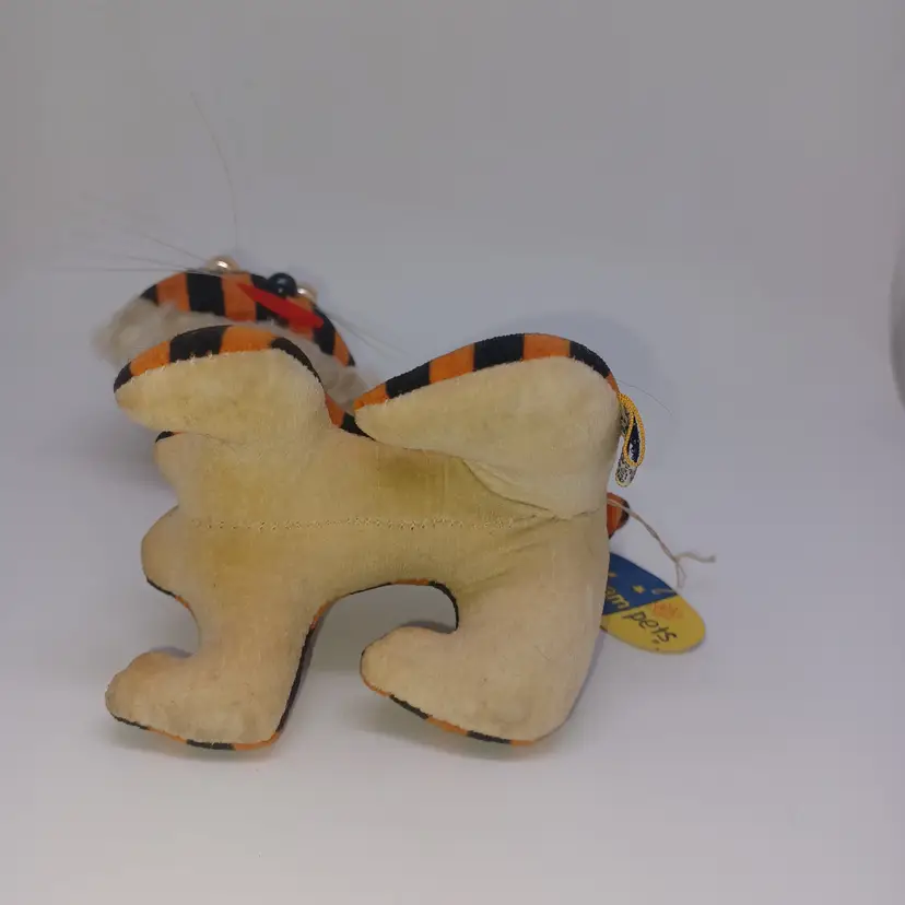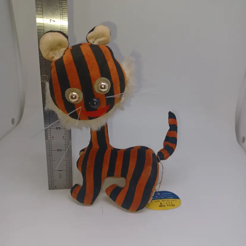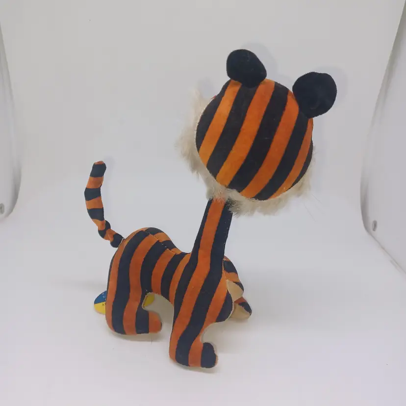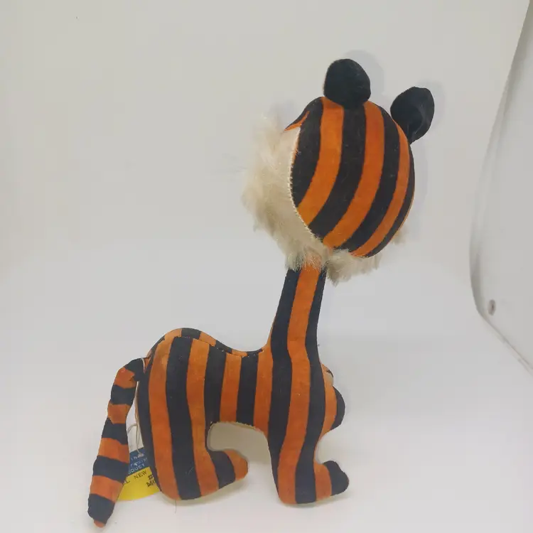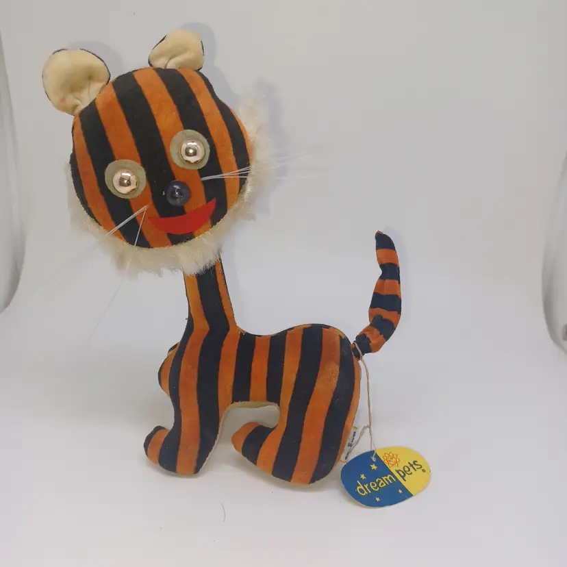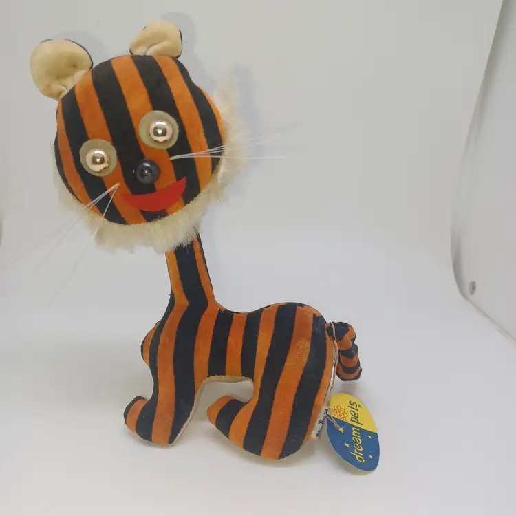 Vintage Dakin Dream Pets #1223 MOD Tiger Japan Velveteen Wood Stuffed HTF W/ Tag Great condition, tiny bit of shelf wear on bottom please see all pictures the are the best description All items from a smoke-free home with pets Tush tag and circle tag intact. Posable tail. Velveteen material and stuffed with wood product. Please ask any questions.