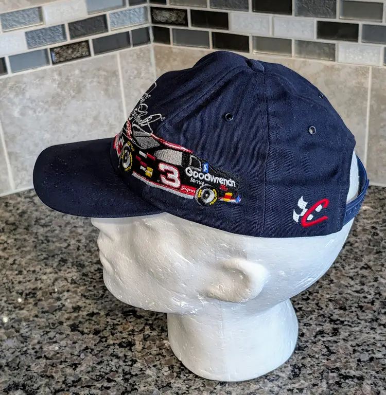 This listing is for a sick Vintage Dale Earnhardt #3 Chase Authentics Goodwrench Snapback Hat with an embroidered Signature and wrap around car. Made In USA. In great condition for it's age. A super sick hat of THE INTIMIDATOR. hard to find these days in such good shape with very little signs of wear. Adjustable to fit most heads.