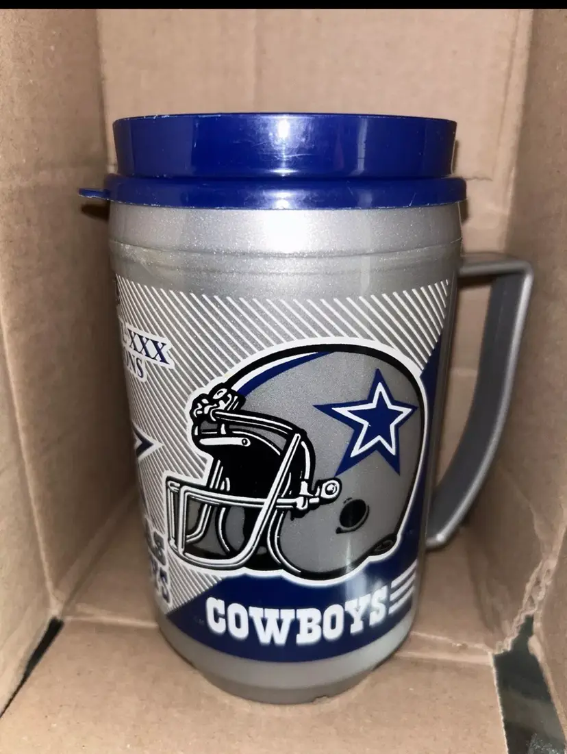 This is a vintage Super Bowl Champion era mug. The Dallas Cowboys won in 1996. Has normal wear. Good condition still.
