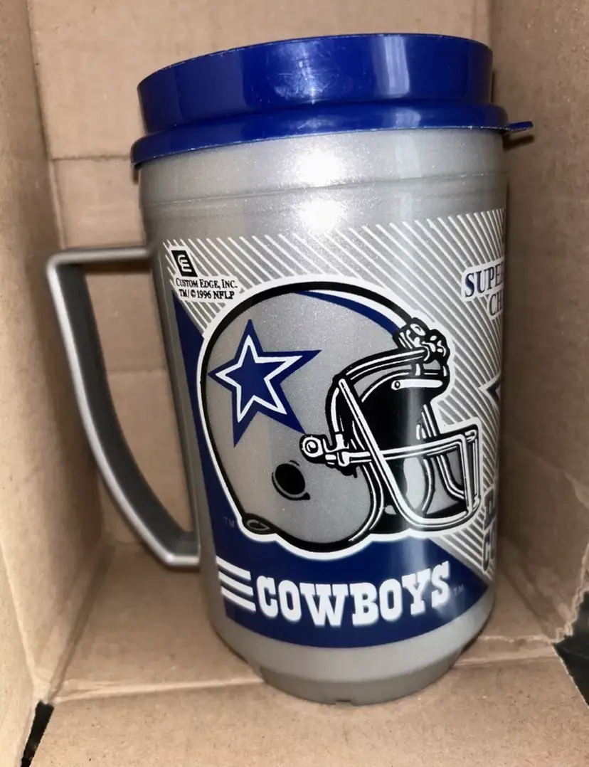 Pre owned Dallas Cowboys mug. Vintage Super Bowl Champions. Old school has normal wear. Good condition.
