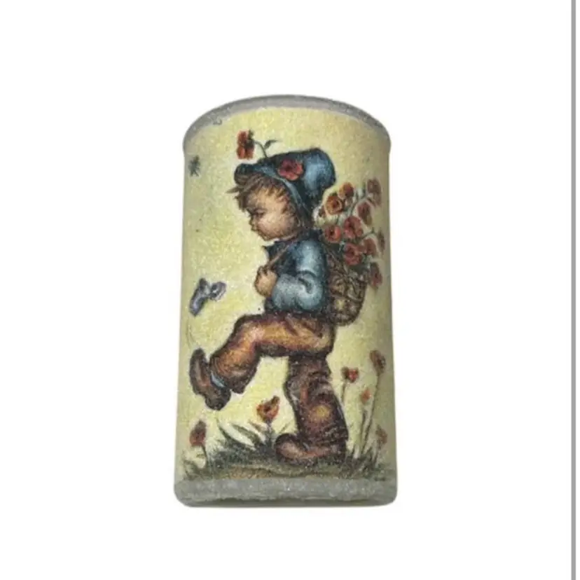 Excellent (like new) condition Danish 5" sugar frosted candle featuring a Hummel boy. • Candle has never been used and wick never trimmed. • No missing spots of "sugar". • DANISH marking on bottom. • Cool vintage find! • Non-smoking environment