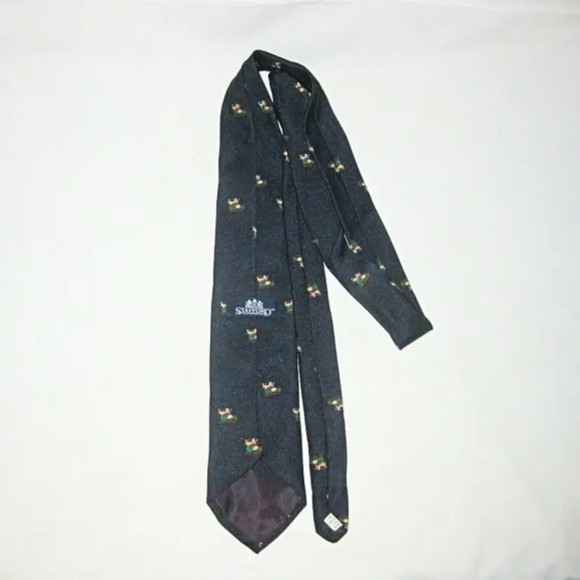 Vintage dark blue necktie featuring a repeating Santa Claus motif. Great for holiday outfits, office parties, or Christmas collectors. Excellent pre‑owned condition.