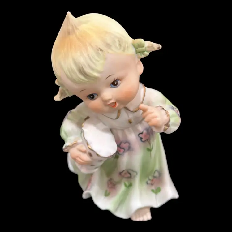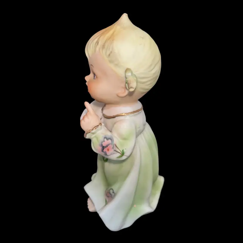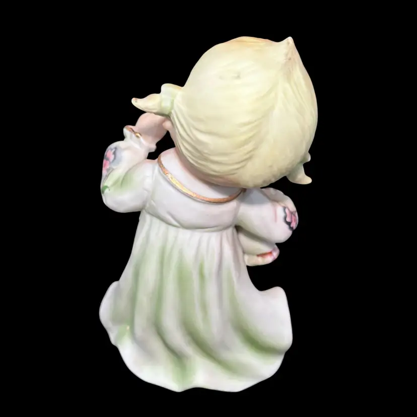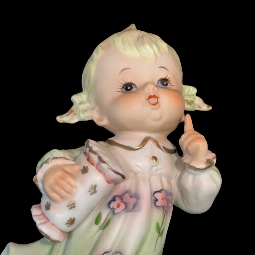 6 in tall porcelain figurine of little girl in her pajamas heading off to bed with her pillow. No sticker but often attributed to Wolin.