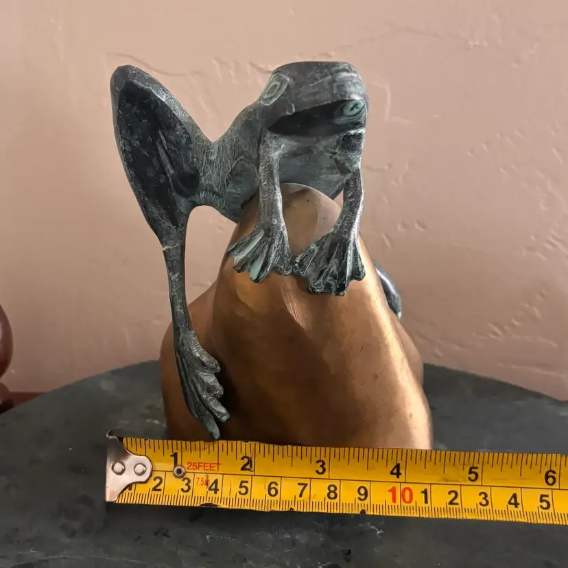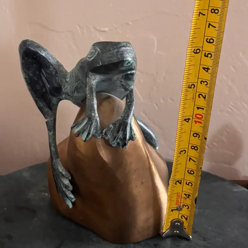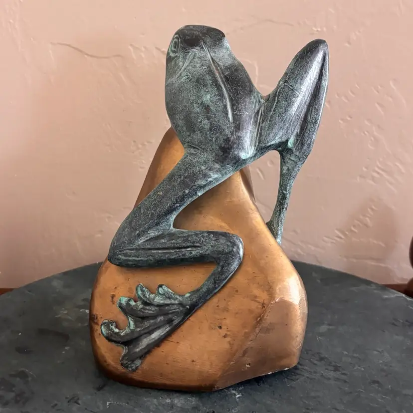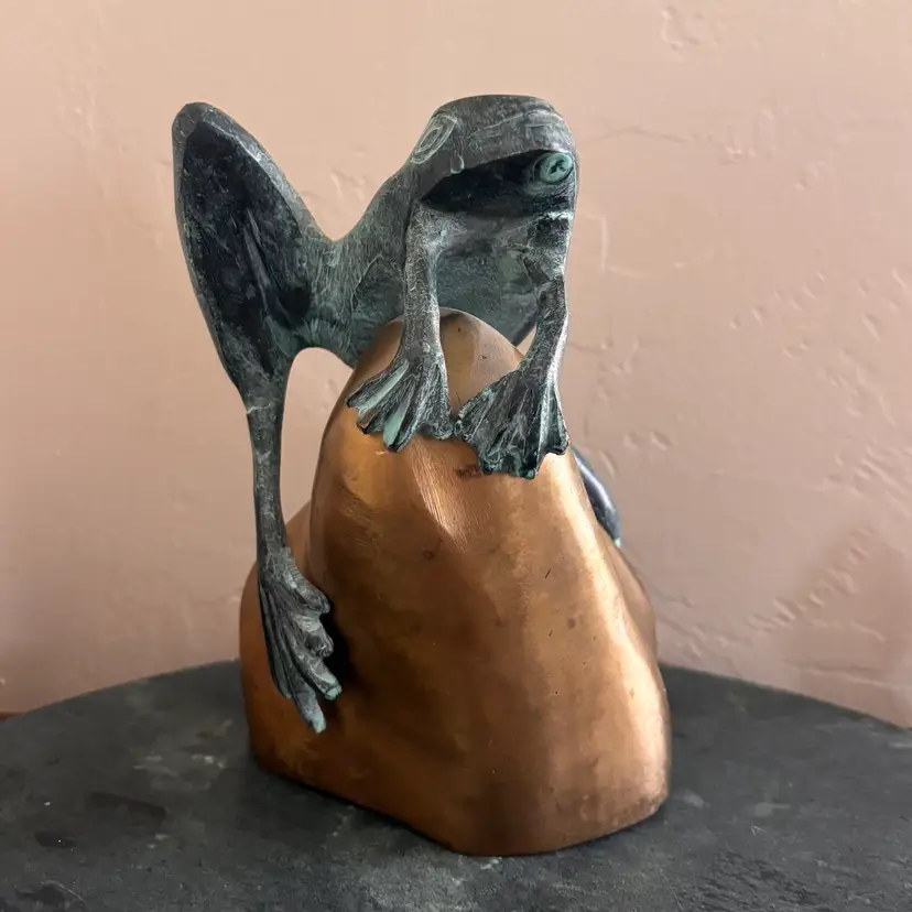 Fabulous frog on rock heavy decor piece 6 1/2"tall x 4"wide Vintage wear and patina as shown