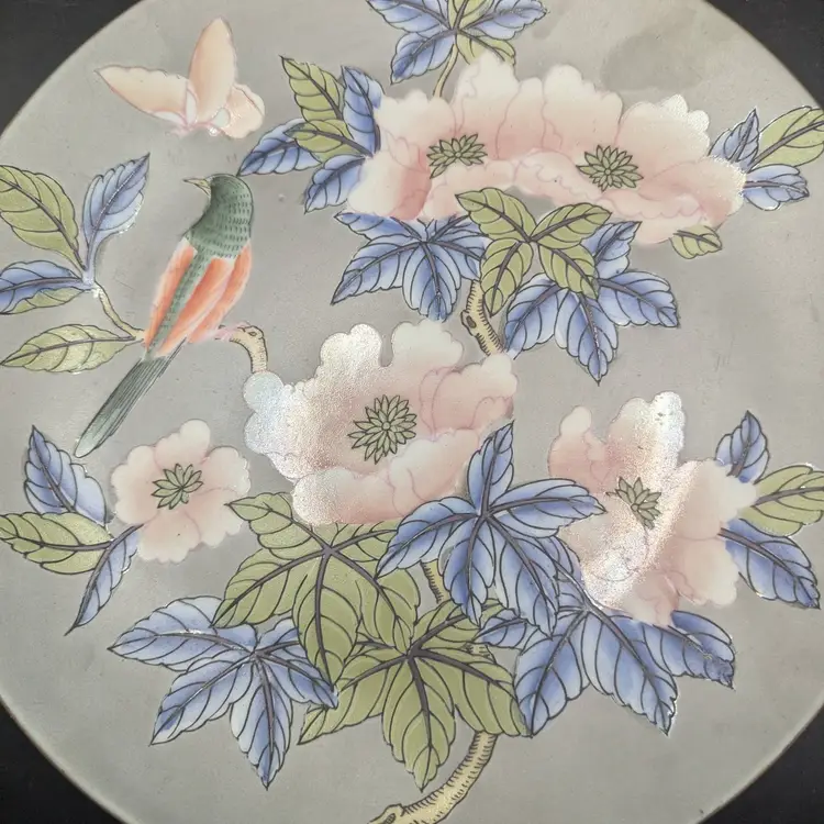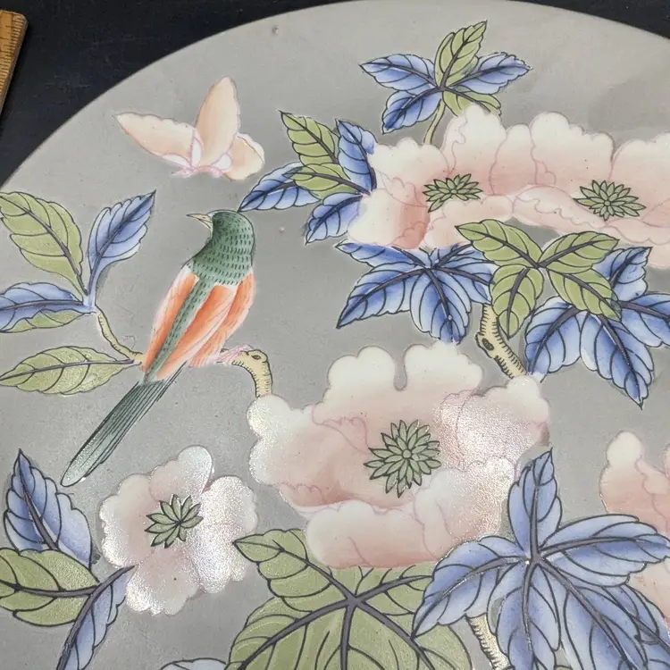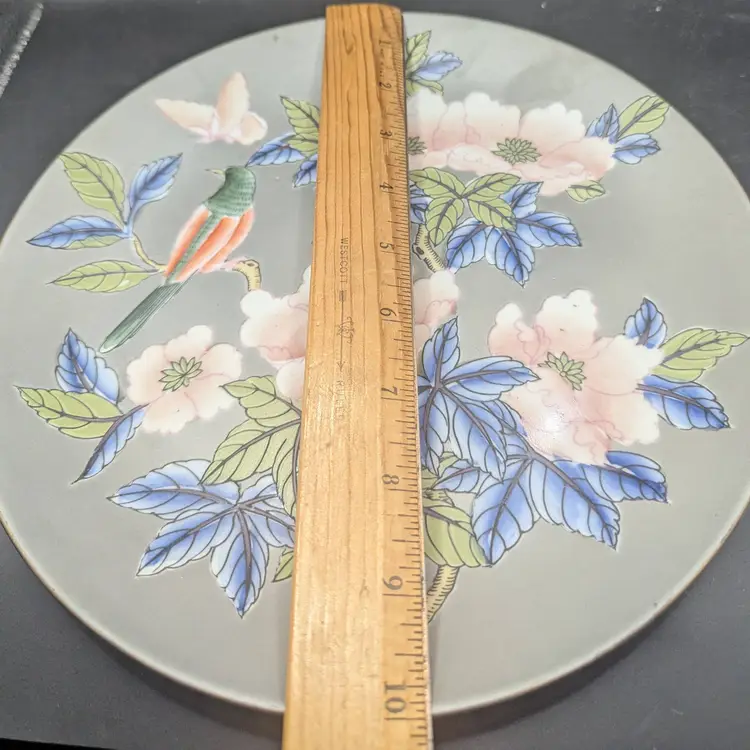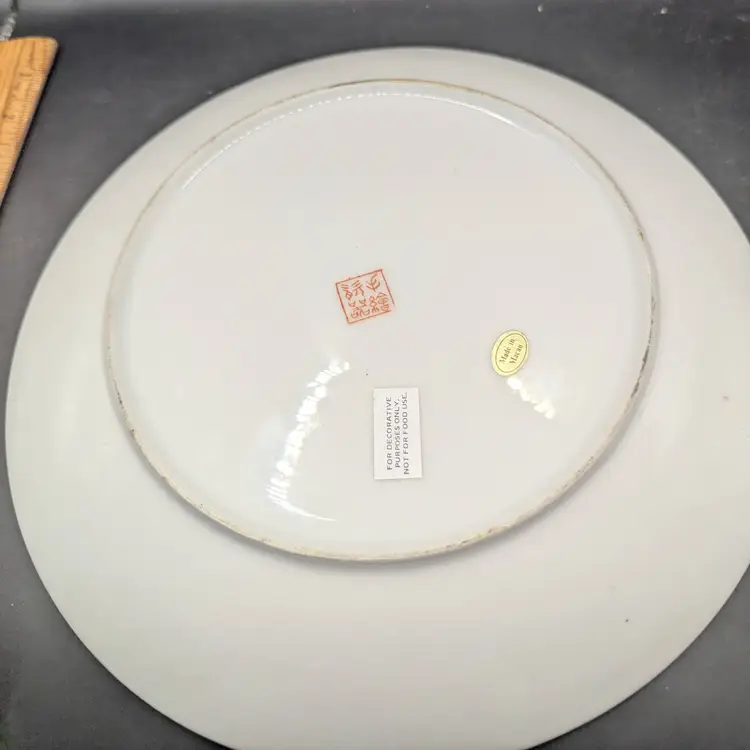 This is a lovely Vintage Decorative Plate Asian Design With Bird. It measures 10 inches in diameter. No chips or cracks. Please see all pictures for condition and measurements.