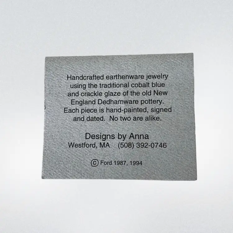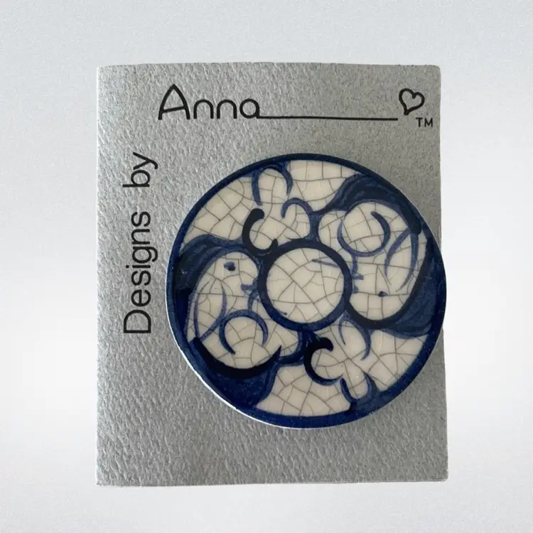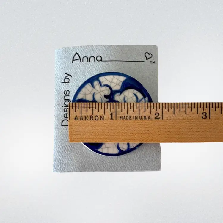 Vintage, Dedham Pottery, Bunnies, Handcrafted, Earthenware Pin, 1.75” in diameter.