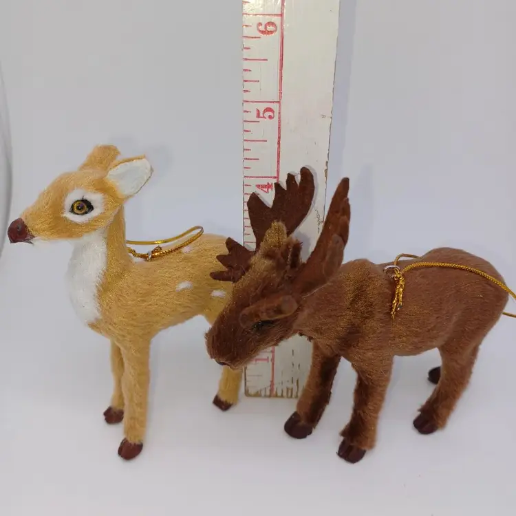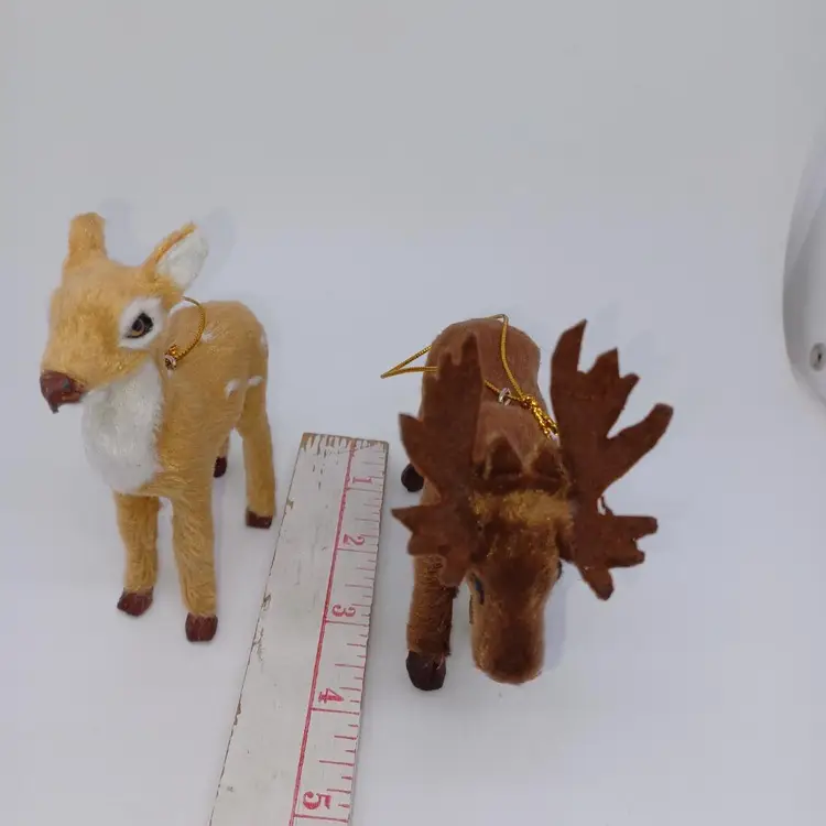 Vintage spotted deer and moose fake fur Christmas ornaments. Measure approximately 4 inches tall 4 inches wide in excellent condition. Please see all pictures as they are the best description
