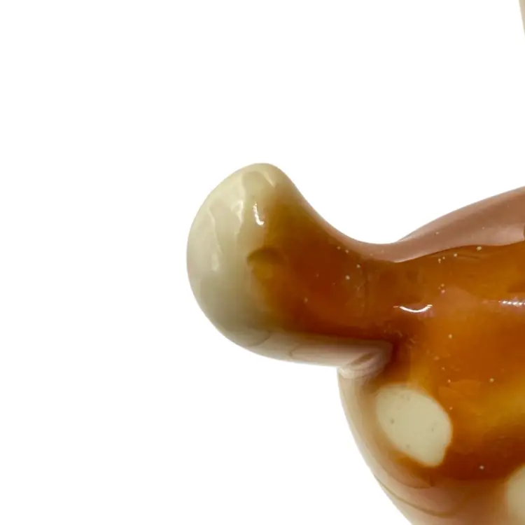 There is a production flaw on tale. It is an indentation & is glazed over. Missing felt on bottom. No chips or cracks.