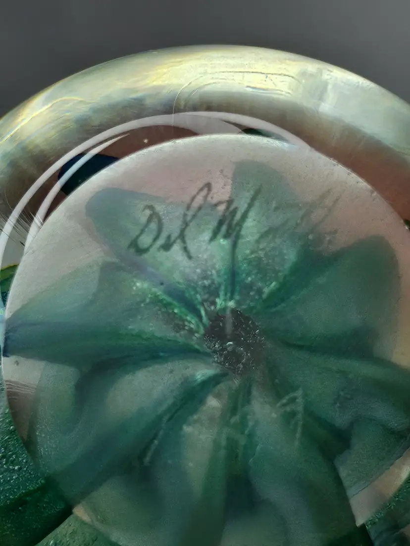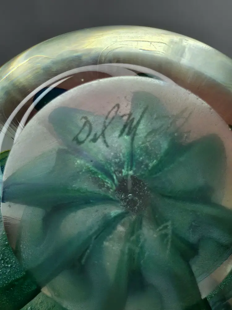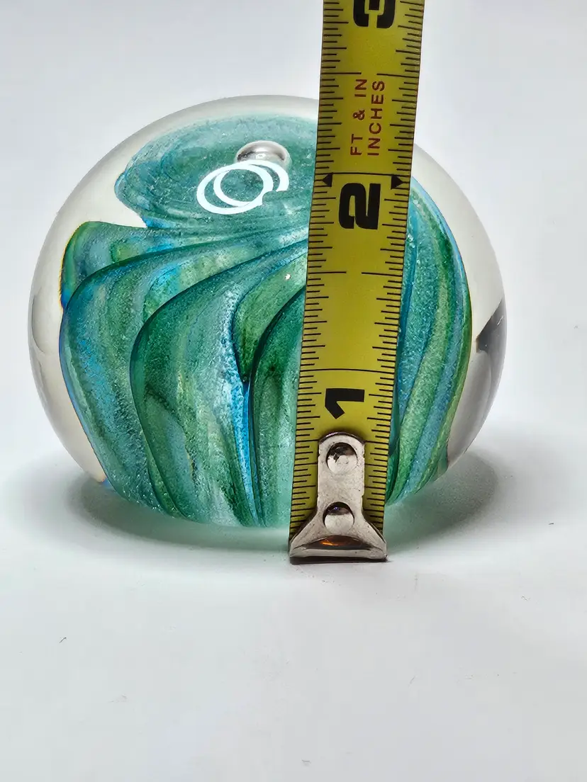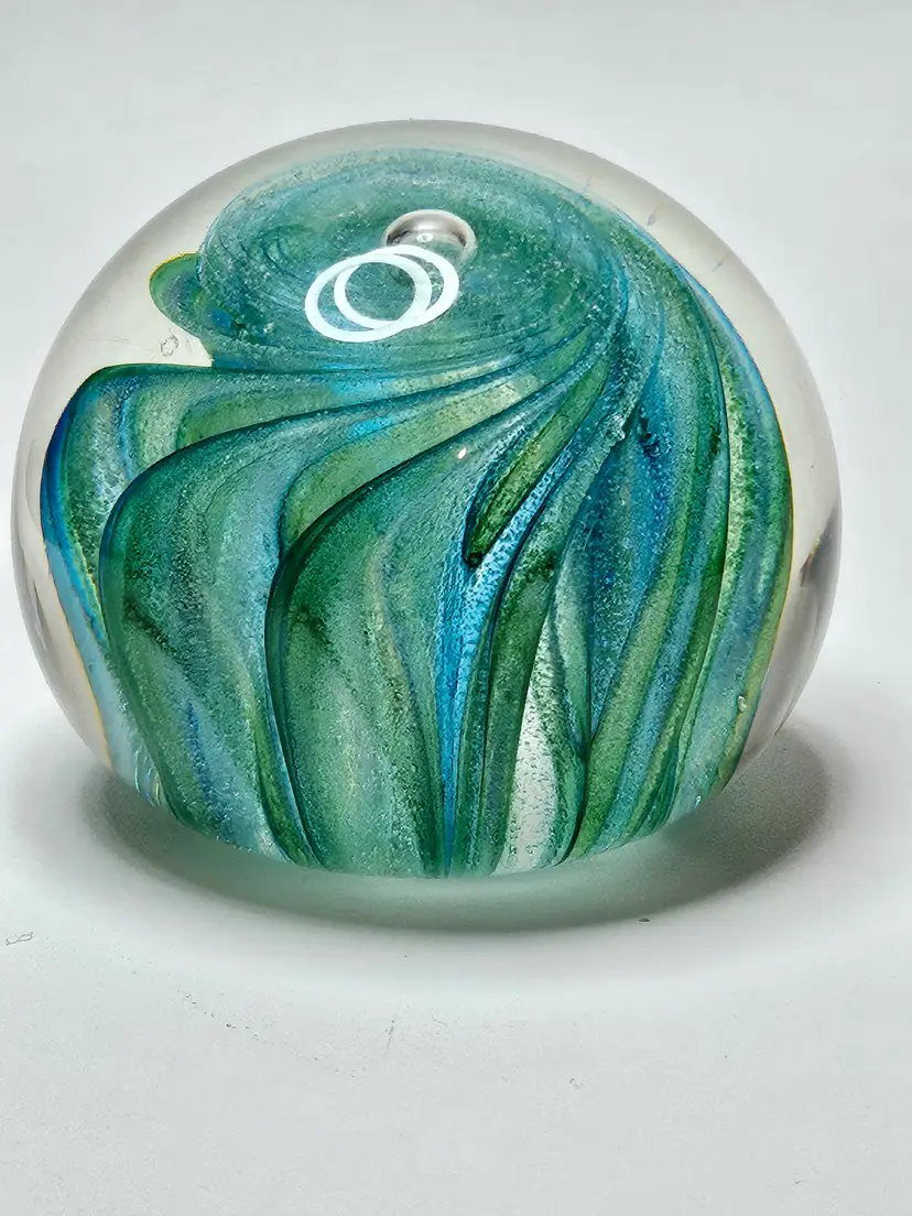 Vintage Del Matto Studio Art Glass Paperweight 1999 Artist Signed Blue Green . Condition is Used. Shipped with USPS Ground Advantage.