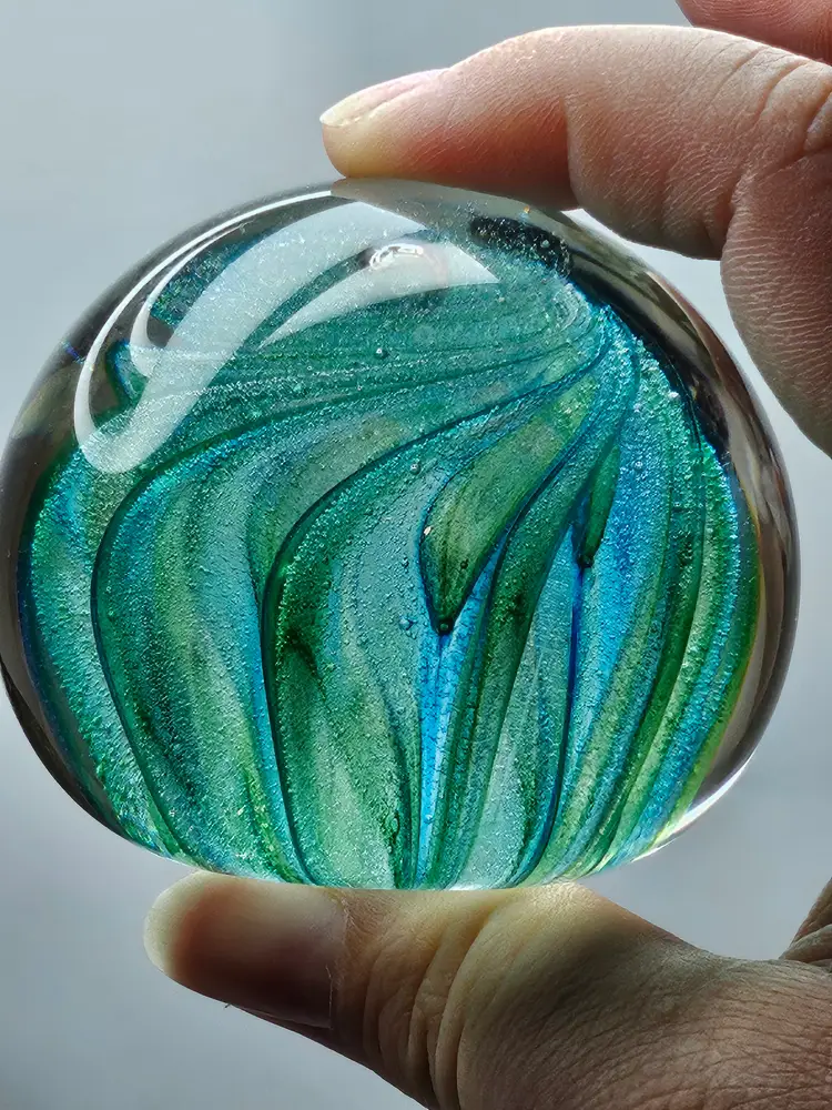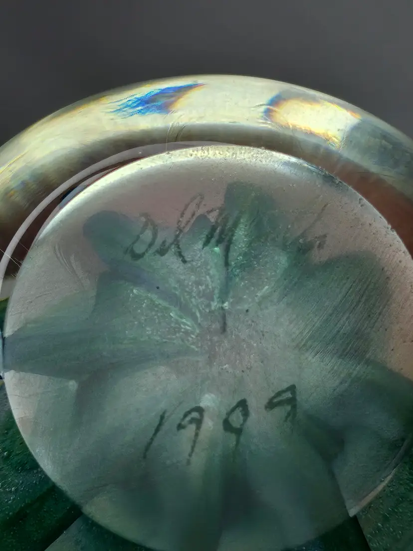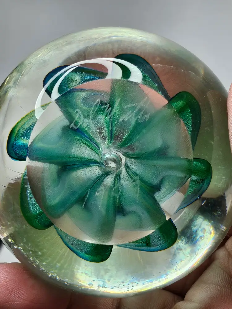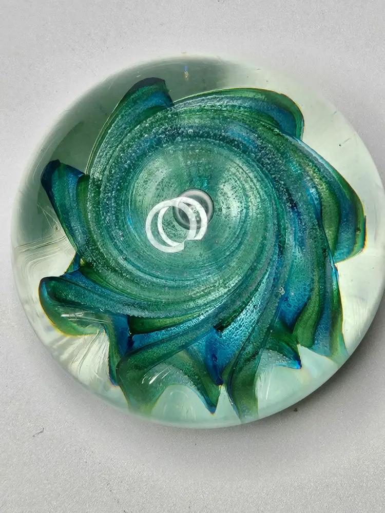 Vintage Del Matto Studio Art Glass Paperweight 1999 Artist Signed Blue Green . Condition is Used. Shipped with USPS Ground Advantage.