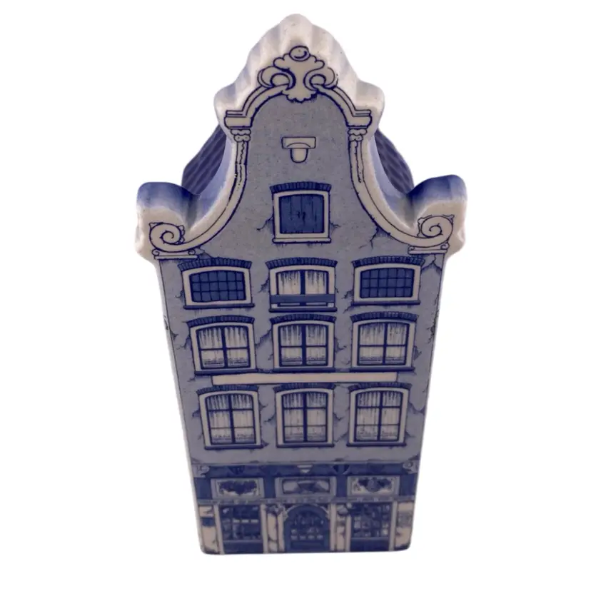Vintage Delft Blue House Building Figurine Decor Signed Made In Holland Blue White Motif CottageCore Country
