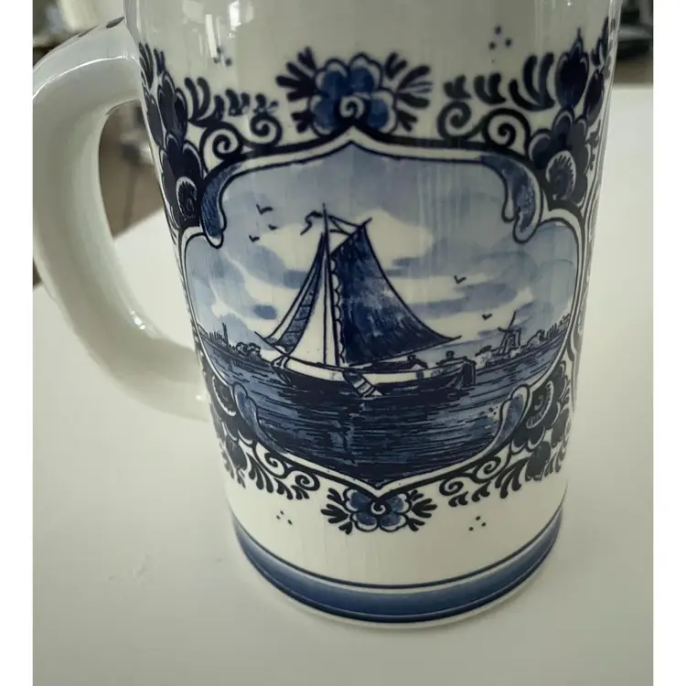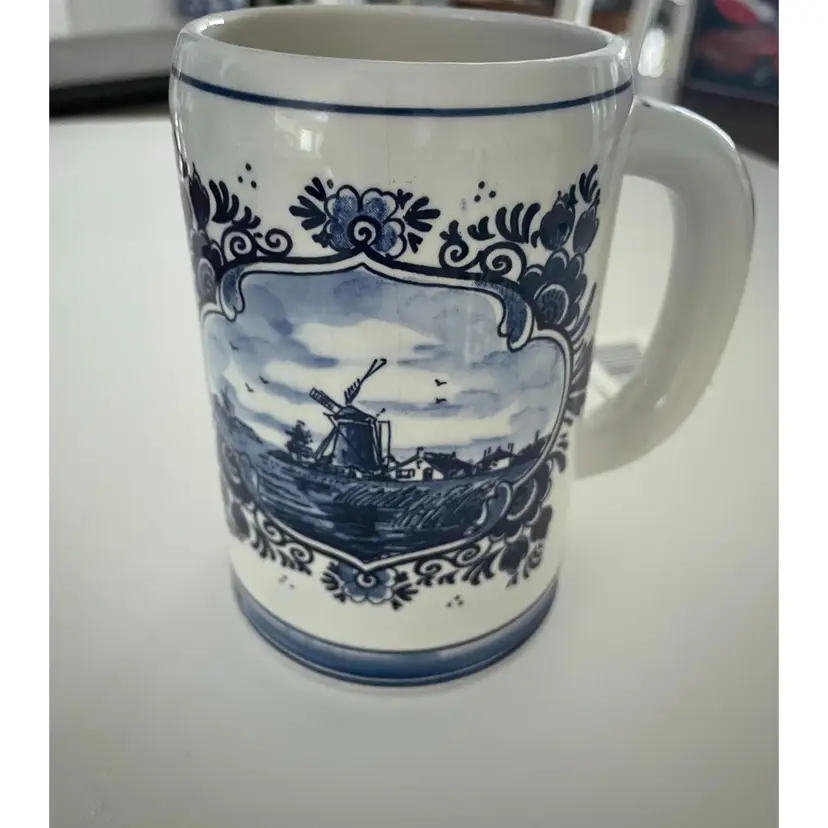 Delft Blue And White Beer Stein 5" High Made in Holland Handpainted Sailboat on front, Windmill on back Excellent condition Smoke and Pet Free environment FAST Shipping!