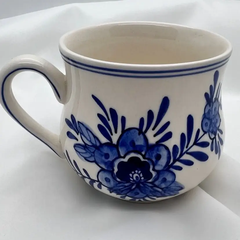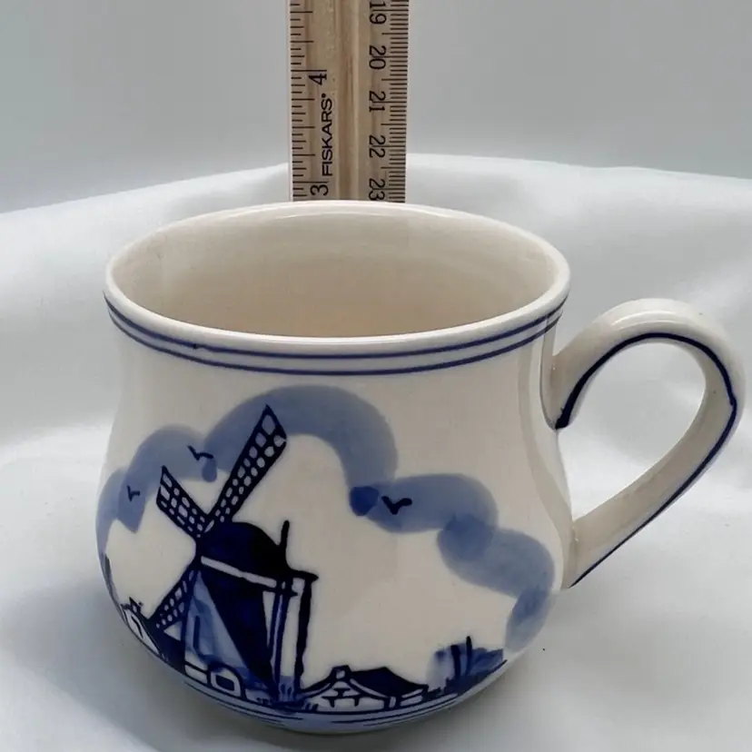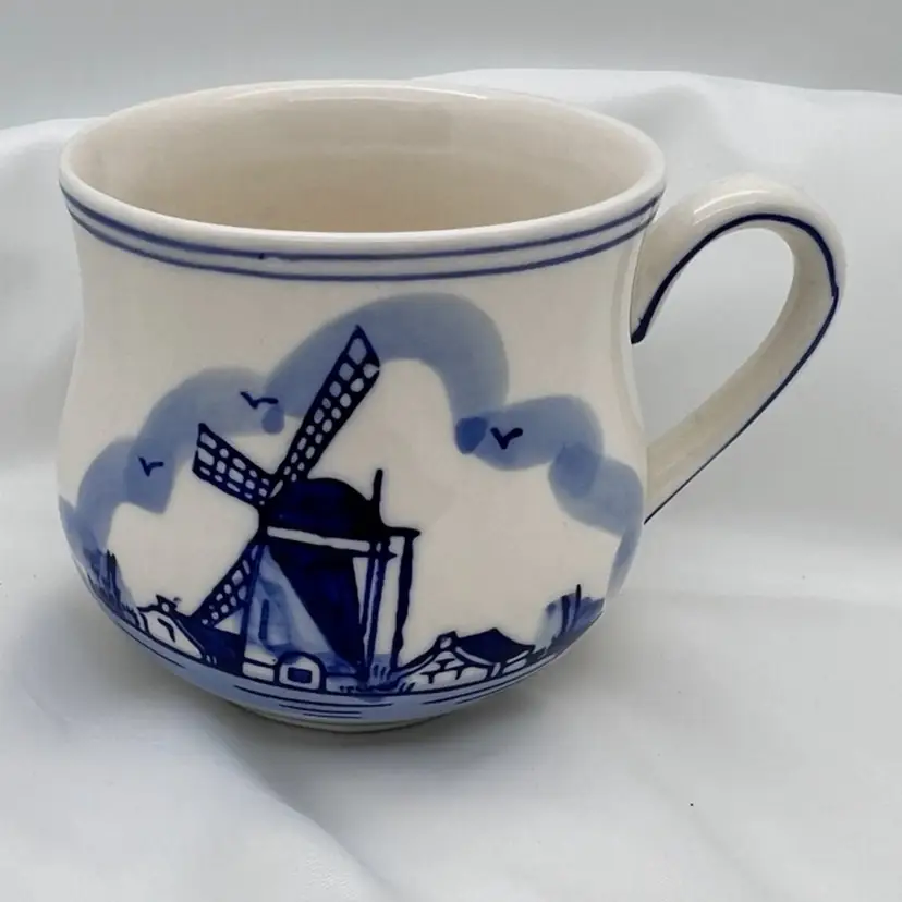 Beautiful Delft mug with hand painted windmill design and floral design on the opposite side. 1980’s collectible coffee mug measuring 3” tall, holds 4-6 ounces. In very good condition no chips, cracks or crazing.