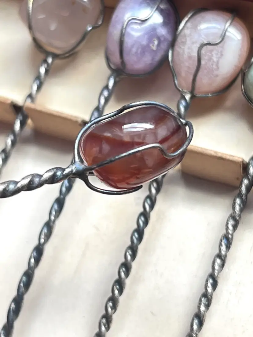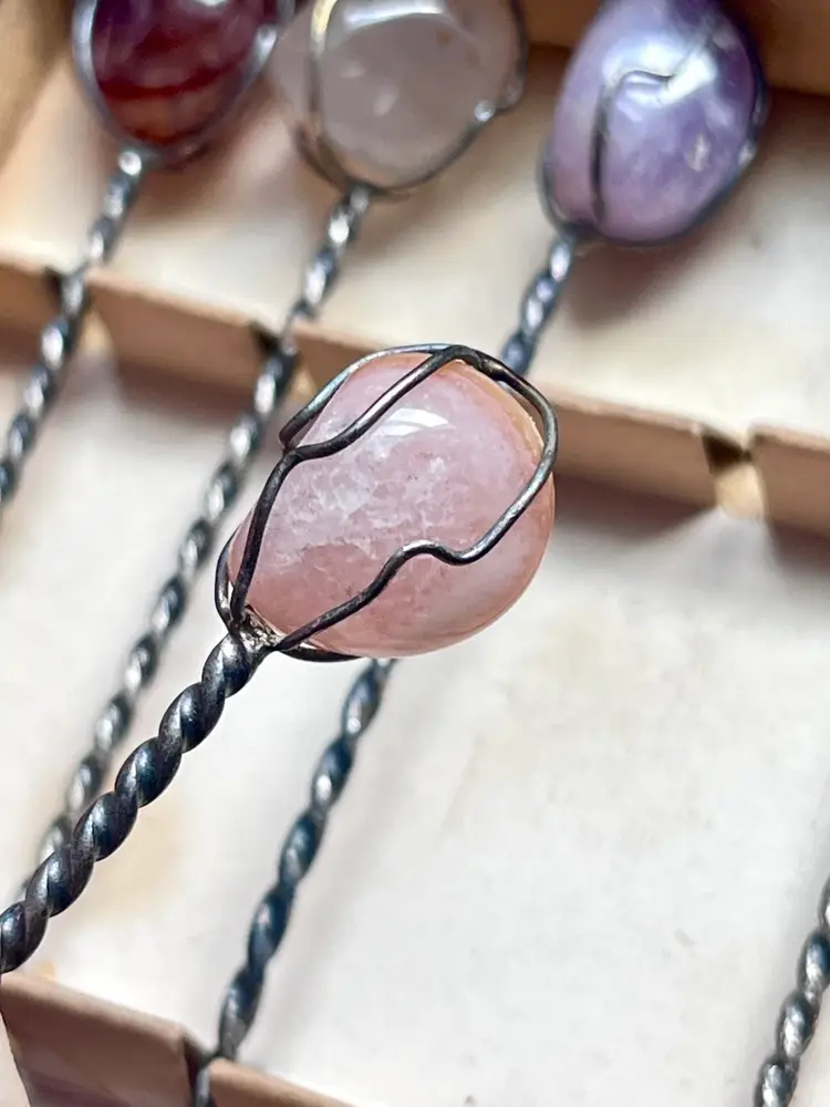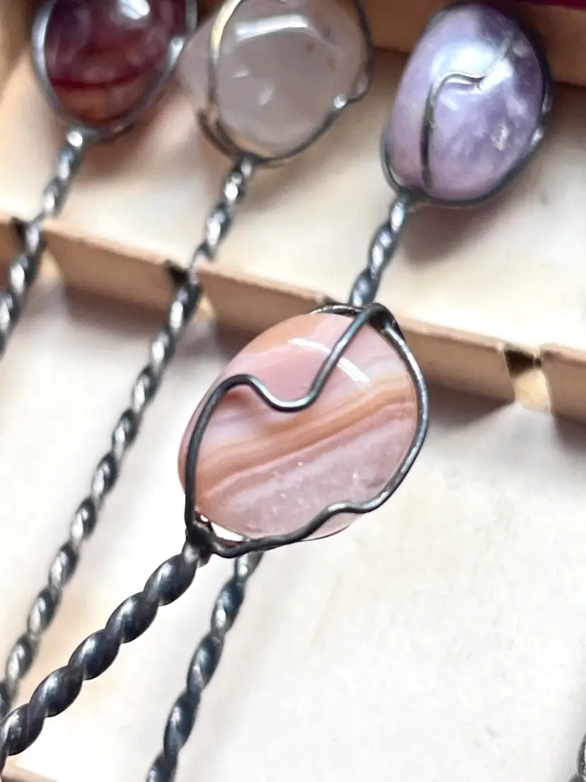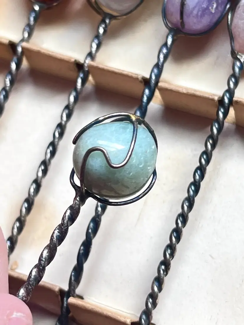 Vintage Demitasse Spoon Set 6 Polished natural stone delicate twisted silver metal 4.5” espresso size
